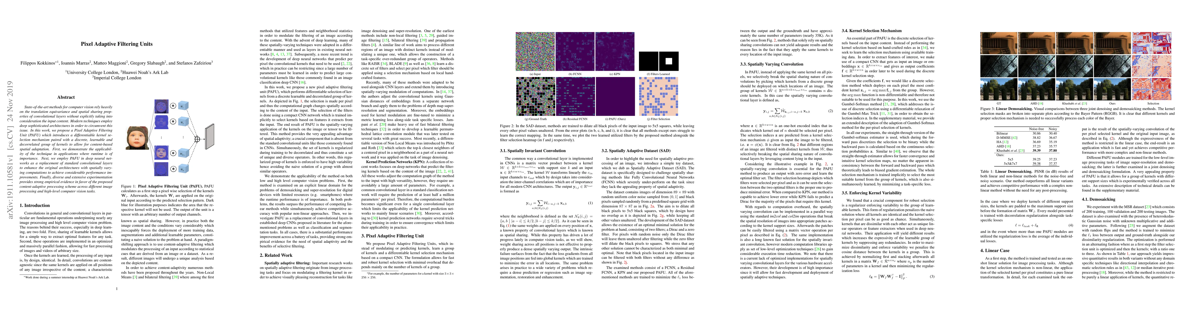Researchers propose a new neural network component called Pixel Adaptive Filtering Unit (PAFU) that adapts to input content for better performance in computer vision tasks.