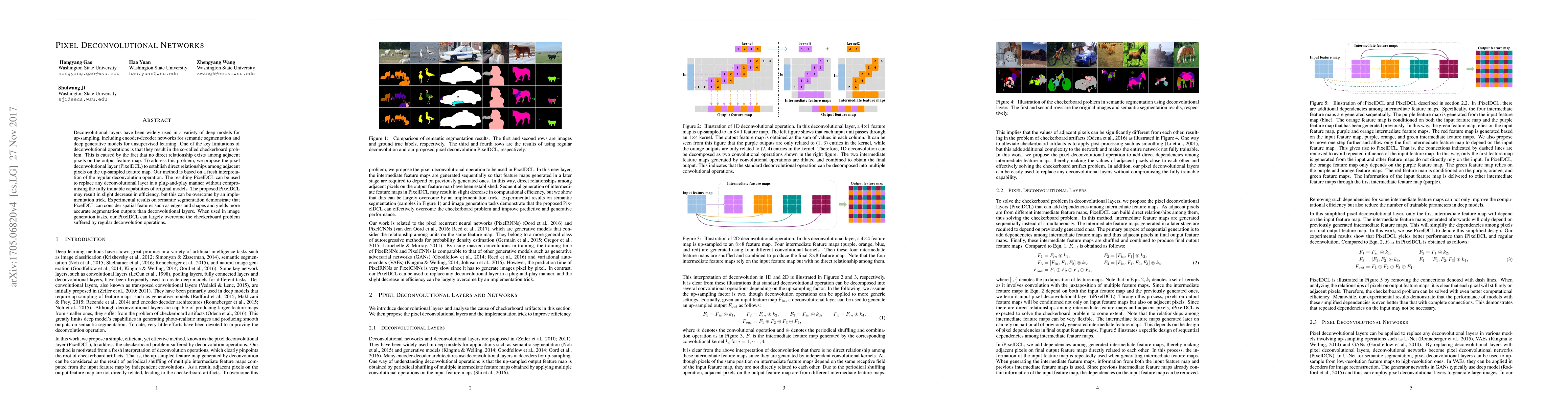Deconvolutional layers have been widely used in a variety of deep models for up-sampling, including encoder-decoder networks for semantic segmentation and deep generative models for unsupervised learning. One of the key limitations of deconvolutional operations is that they result in the so-called checkerboard problem. This is caused by the fact that no direct relationship exists among adjacent pixels on the output feature map. To address this problem, we propose the pixel deconvolutional layer (PixelDCL) to establish direct relationships among adjacent pixels on the up-sampled feature map. Our method is based on a fresh interpretation of the regular deconvolution operation. The resulting PixelDCL can be used to replace any deconvolutional layer in a plug-and-play manner without compromising the fully trainable capabilities of original models. The proposed PixelDCL may result in slight decrease in efficiency, but this can be overcome by an implementation trick. Experimental results on semantic segmentation demonstrate that PixelDCL can consider spatial features such as edges and shapes and yields more accurate segmentation outputs than deconvolutional layers. When used in image generation tasks, our PixelDCL can largely overcome the checkerboard problem suffered by regular deconvolution operations.