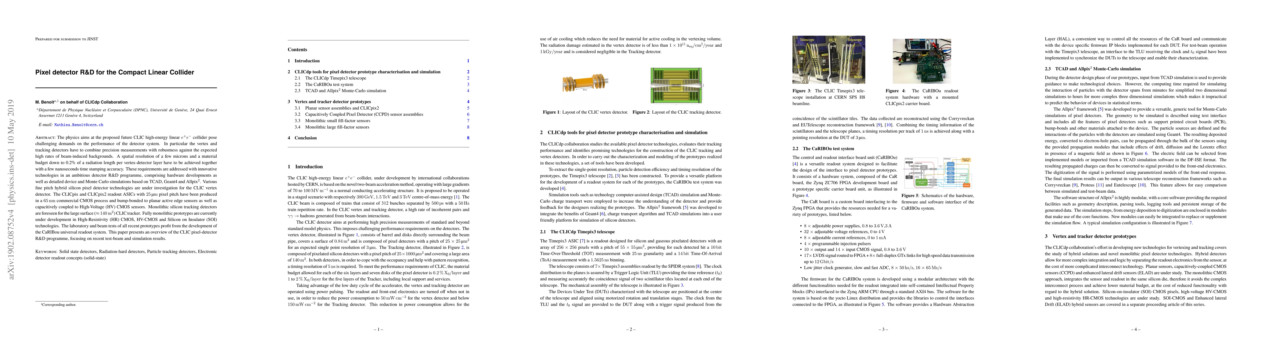 This paper discusses the research and development of pixel detectors for the Compact Linear Collider (CLIC), focusing on innovative technologies to meet stringent precision and robustness requirements. It highlights the development of CLICpix and CLICpix2 readout ASICs, as well as ongoing work on monolithic silicon tracking detectors, supported by comprehensive simulations and test-beam results.