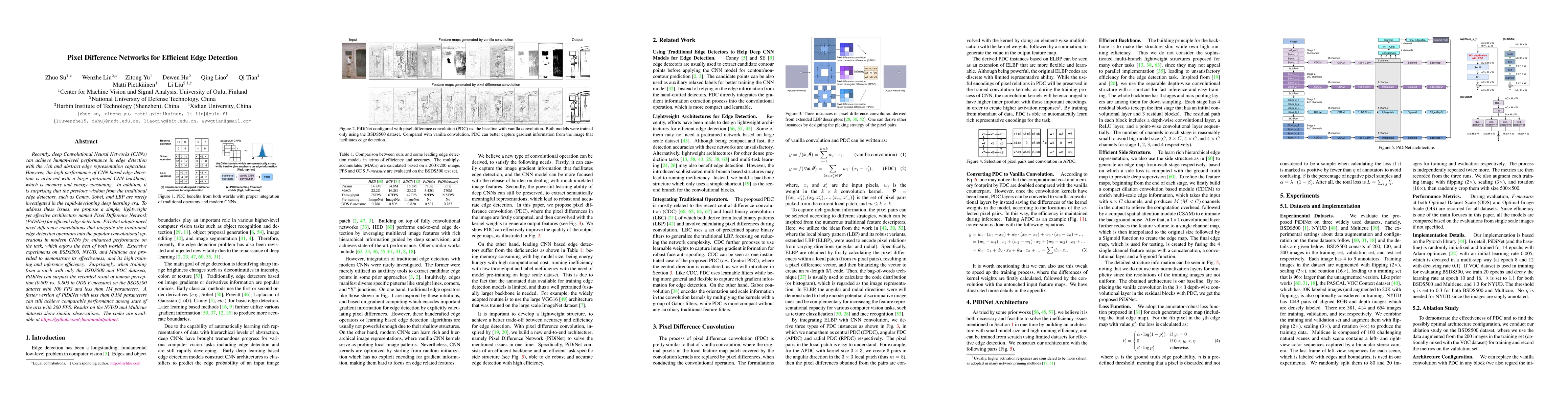 Researchers propose Pixel Difference Network (PiDiNet) for efficient edge detection, achieving human-level performance with a lightweight architecture that requires less memory and energy than existing deep learning methods.