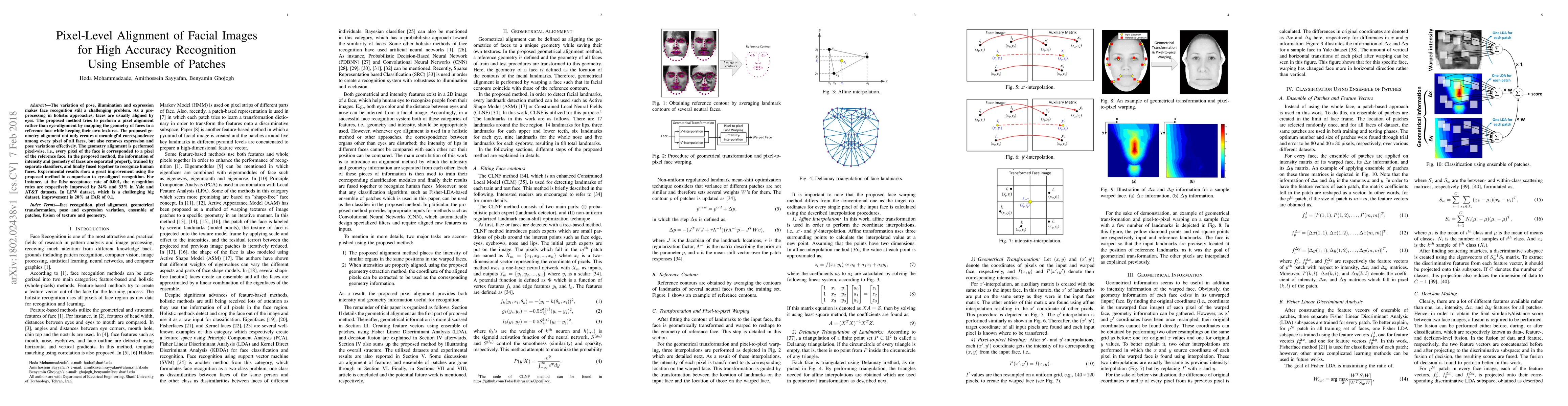 Researchers developed a method to align facial images for improved recognition accuracy by mapping faces to a reference face based on pixel-level geometry alignment, achieving significant improvements in datasets such as Yale, AT&T, and LFW.