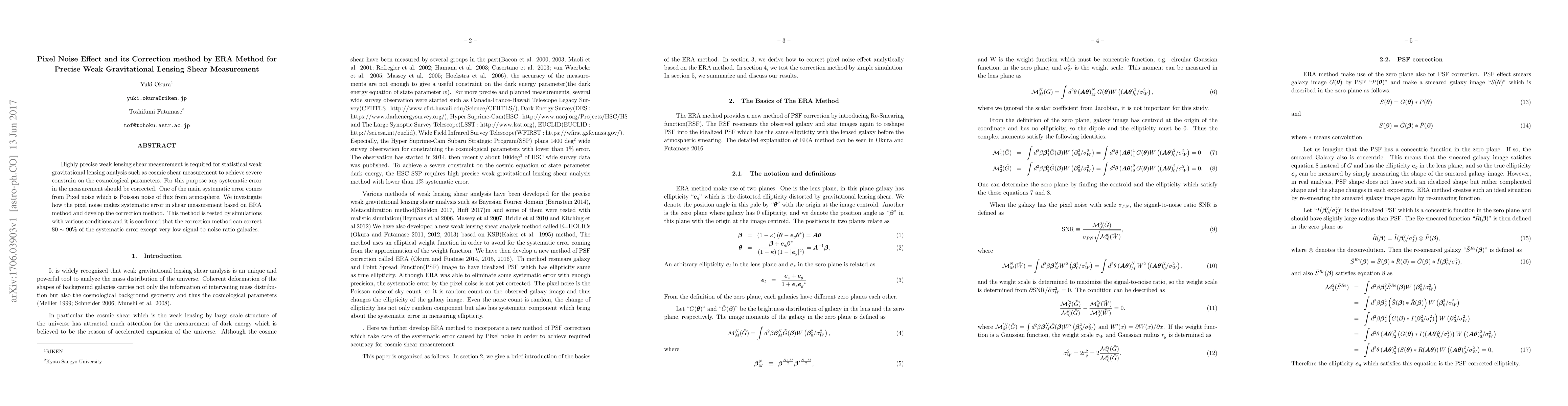 This paper investigates the systematic error in weak gravitational lensing shear measurement caused by pixel noise and proposes an ERA method for its correction. Simulation results show that the correction method effectively reduces $80 \sim 90\%$ of the systematic error, except for galaxies with very low signal-to-noise ratios.