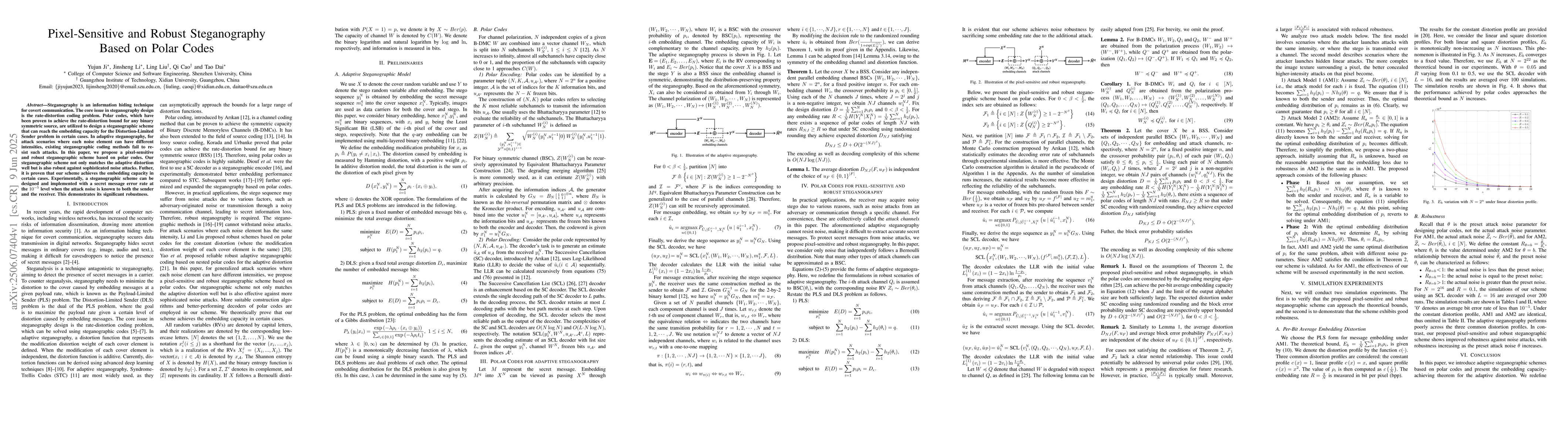 A new steganographic scheme based on polar codes achieves robustness against sophisticated noise attacks and reaches the embedding capacity in certain cases. It is proven to match adaptive distortion well with a secret message error rate at $10^{-5}$ level when attack noise is known to both sender and receiver.