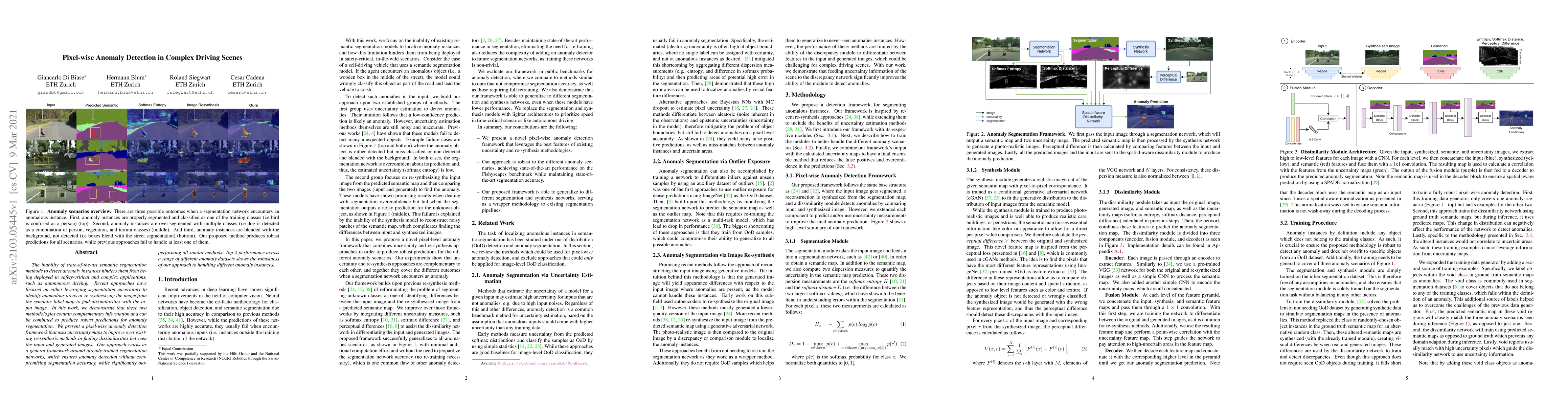 This paper proposes a pixel-wise anomaly detection framework that combines segmentation uncertainty and re-synthesis methods to enhance anomaly detection in complex driving scenes. The method outperforms existing techniques by leveraging complementary information from both approaches, ensuring robust anomaly detection without sacrificing segmentation accuracy.