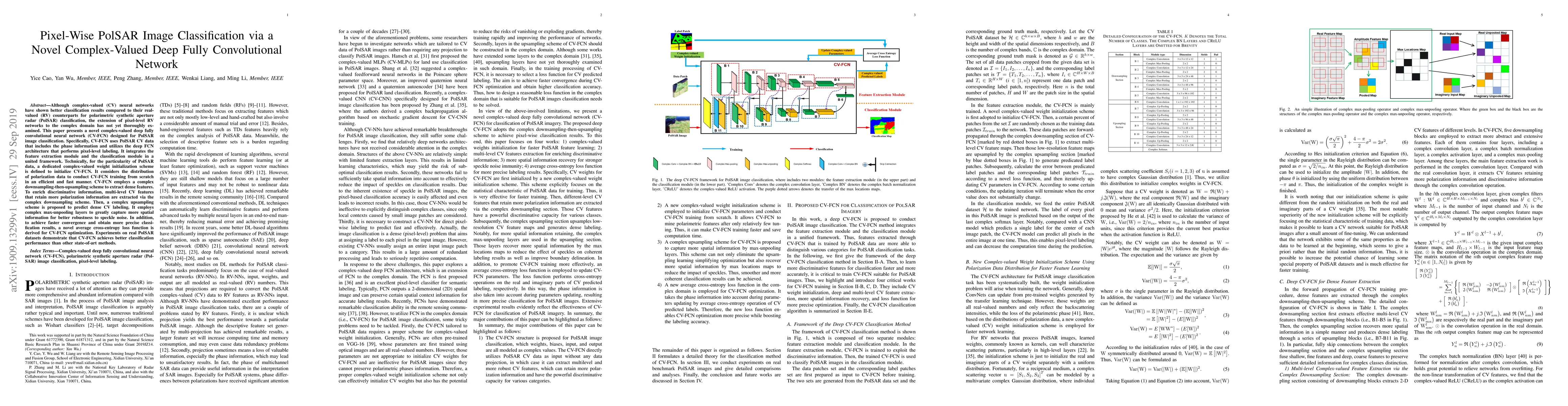 This paper proposes a novel complex-valued deep fully convolutional network (CV-FCN) for PolSAR image classification, utilizing complex-valued data including phase information and a deep FCN architecture for pixel-wise labeling. The network integrates feature extraction and classification modules, employing a dedicated complex-valued weight initialization scheme, a complex downsampling-then-upsampling scheme, and a novel average cross-entropy loss function.