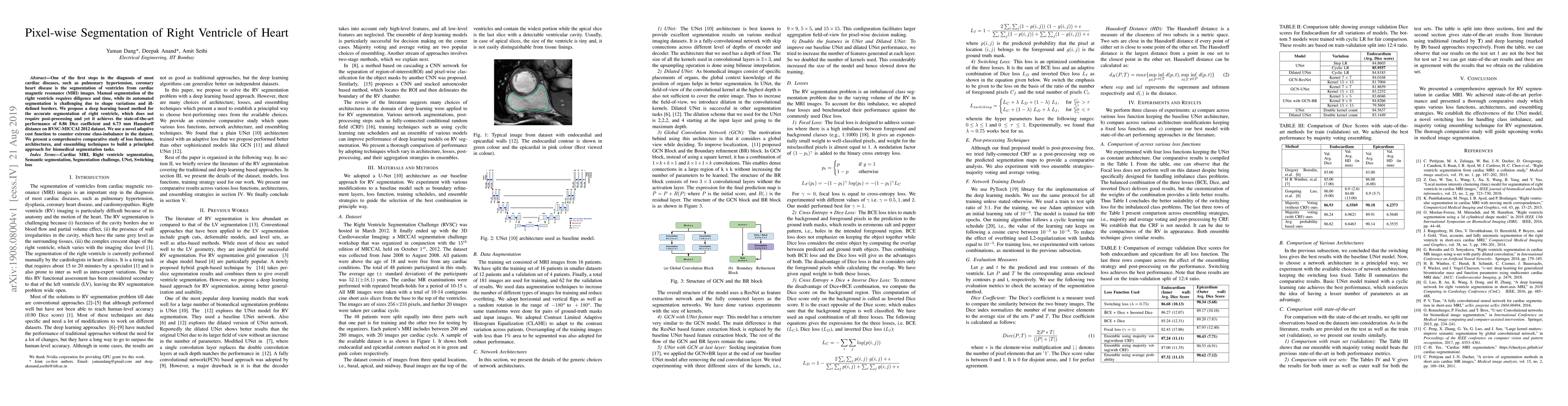 One of the first steps in the diagnosis of most cardiac diseases, such as pulmonary hypertension, coronary heart disease is the segmentation of ventricles from cardiac magnetic resonance (MRI) images. Manual segmentation of the right ventricle requires diligence and time, while its automated segmentation is challenging due to shape variations and illdefined borders. We propose a deep learning based method for the accurate segmentation of right ventricle, which does not require post-processing and yet it achieves the state-of-the-art performance of 0.86 Dice coefficient and 6.73 mm Hausdorff distance on RVSC-MICCAI 2012 dataset. We use a novel adaptive cost function to counter extreme class-imbalance in the dataset. We present a comprehensive comparative study of loss functions, architectures, and ensembling techniques to build a principled approach for biomedical segmentation tasks.