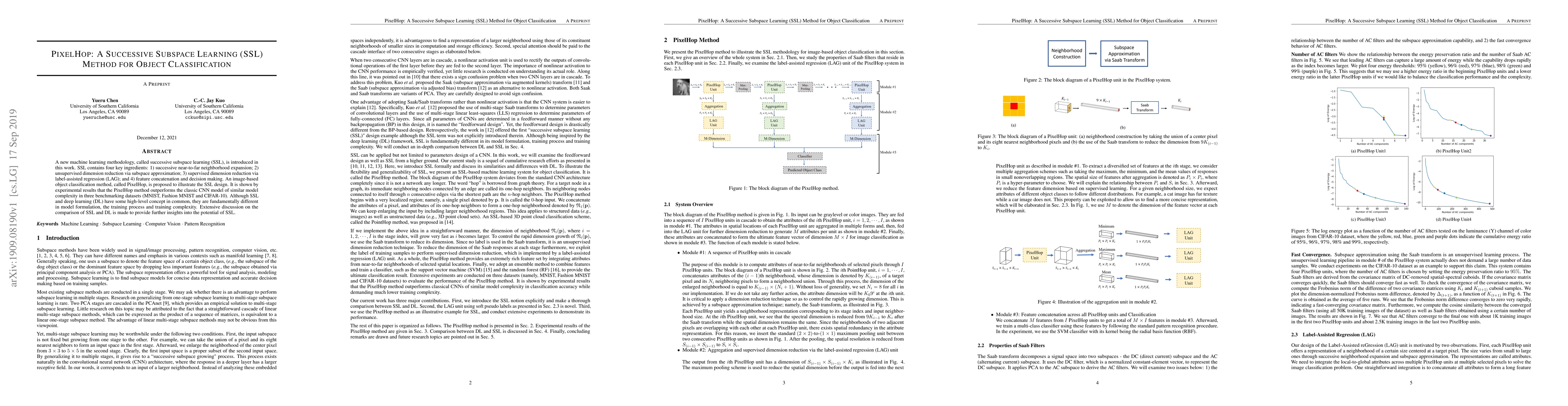 A new machine learning methodology, called successive subspace learning (SSL), is introduced in this work. SSL contains four key ingredients: 1) successive near-to-far neighborhood expansion; 2) unsupervised dimension reduction via subspace approximation; 3) supervised dimension reduction via label-assisted regression (LAG); and 4) feature concatenation and decision making. An image-based object classification method, called PixelHop, is proposed to illustrate the SSL design. It is shown by experimental results that the PixelHop method outperforms the classic CNN model of similar model complexity in three benchmarking datasets (MNIST, Fashion MNIST and CIFAR-10). Although SSL and deep learning (DL) have some high-level concept in common, they are fundamentally different in model formulation, the training process and training complexity. Extensive discussion on the comparison of SSL and DL is made to provide further insights into the potential of SSL.