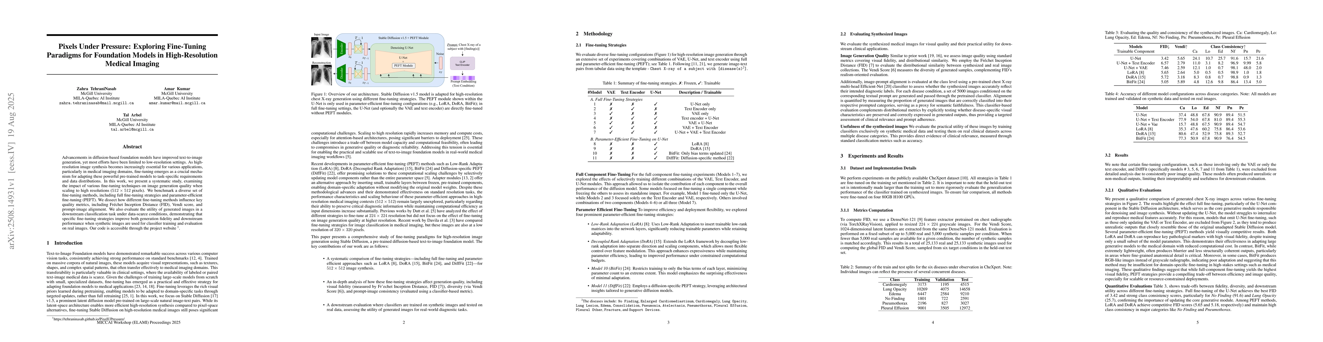 Advancements in diffusion-based foundation models have improved text-to-image generation, yet most efforts have been limited to low-resolution settings. As high-resolution image synthesis becomes increasingly essential for various applications, particularly in medical imaging domains, fine-tuning emerges as a crucial mechanism for adapting these powerful pre-trained models to task-specific requirements and data distributions. In this work, we present a systematic study, examining the impact of various fine-tuning techniques on image generation quality when scaling to high resolution 512x512 pixels. We benchmark a diverse set of fine-tuning methods, including full fine-tuning strategies and parameter-efficient fine-tuning (PEFT). We dissect how different fine-tuning methods influence key quality metrics, including Fr\'echet Inception Distance (FID), Vendi score, and prompt-image alignment. We also evaluate the utility of generated images in a downstream classification task under data-scarce conditions, demonstrating that specific fine-tuning strategies improve both generation fidelity and downstream performance when synthetic images are used for classifier training and evaluation on real images. Our code is accessible through the project website - https://tehraninasab.github.io/PixelUPressure/.