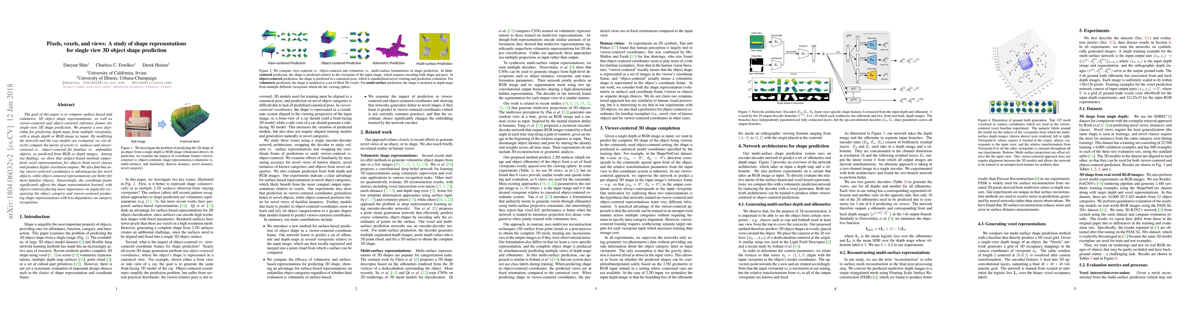 The goal of this paper is to compare surface-based and volumetric 3D object shape representations, as well as viewer-centered and object-centered reference frames for single-view 3D shape prediction. We propose a new algorithm for predicting depth maps from multiple viewpoints, with a single depth or RGB image as input. By modifying the network and the way models are evaluated, we can directly compare the merits of voxels vs. surfaces and viewer-centered vs. object-centered for familiar vs. unfamiliar objects, as predicted from RGB or depth images. Among our findings, we show that surface-based methods outperform voxel representations for objects from novel classes and produce higher resolution outputs. We also find that using viewer-centered coordinates is advantageous for novel objects, while object-centered representations are better for more familiar objects. Interestingly, the coordinate frame significantly affects the shape representation learned, with object-centered placing more importance on implicitly recognizing the object category and viewer-centered producing shape representations with less dependence on category recognition.