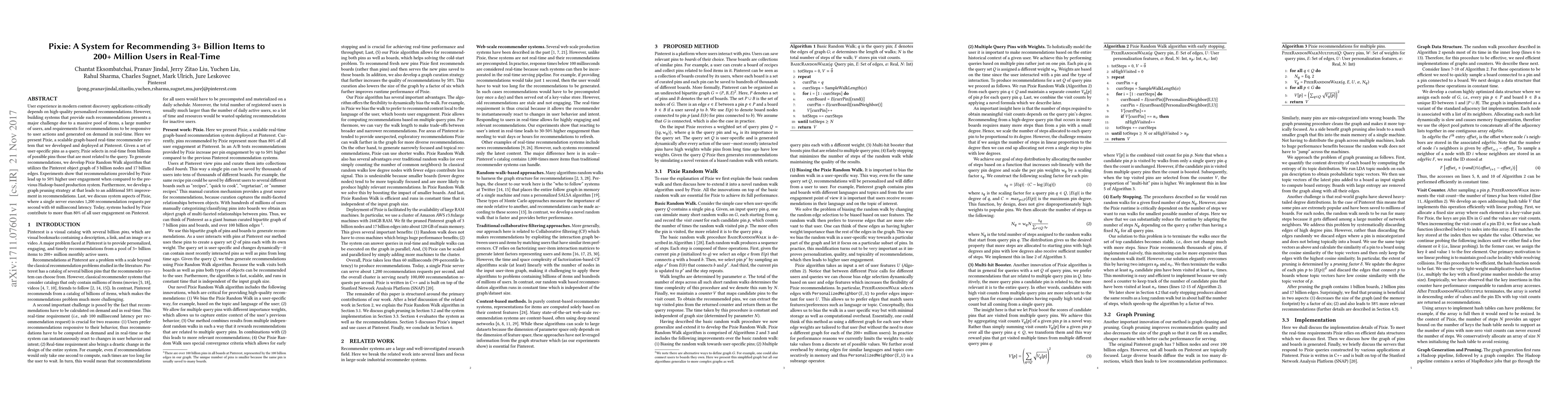 User experience in modern content discovery applications critically depends on high-quality personalized recommendations. However, building systems that provide such recommendations presents a major challenge due to a massive pool of items, a large number of users, and requirements for recommendations to be responsive to user actions and generated on demand in real-time. Here we present Pixie, a scalable graph-based real-time recommender system that we developed and deployed at Pinterest. Given a set of user-specific pins as a query, Pixie selects in real-time from billions of possible pins those that are most related to the query. To generate recommendations, we develop Pixie Random Walk algorithm that utilizes the Pinterest object graph of 3 billion nodes and 17 billion edges. Experiments show that recommendations provided by Pixie lead up to 50% higher user engagement when compared to the previous Hadoop-based production system. Furthermore, we develop a graph pruning strategy at that leads to an additional 58% improvement in recommendations. Last, we discuss system aspects of Pixie, where a single server executes 1,200 recommendation requests per second with 60 millisecond latency. Today, systems backed by Pixie contribute to more than 80% of all user engagement on Pinterest.