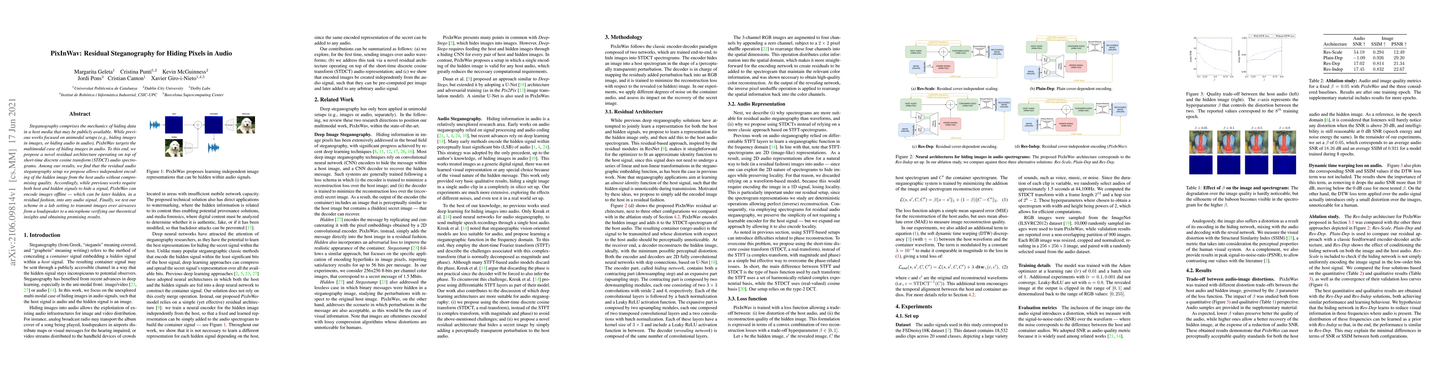 PixInWav introduces a novel residual steganography method for embedding images into audio, allowing offline encoding of images that can later be hidden into any audio without compromising quality. Lab tests confirm the method's effectiveness in transmitting images over airwaves.