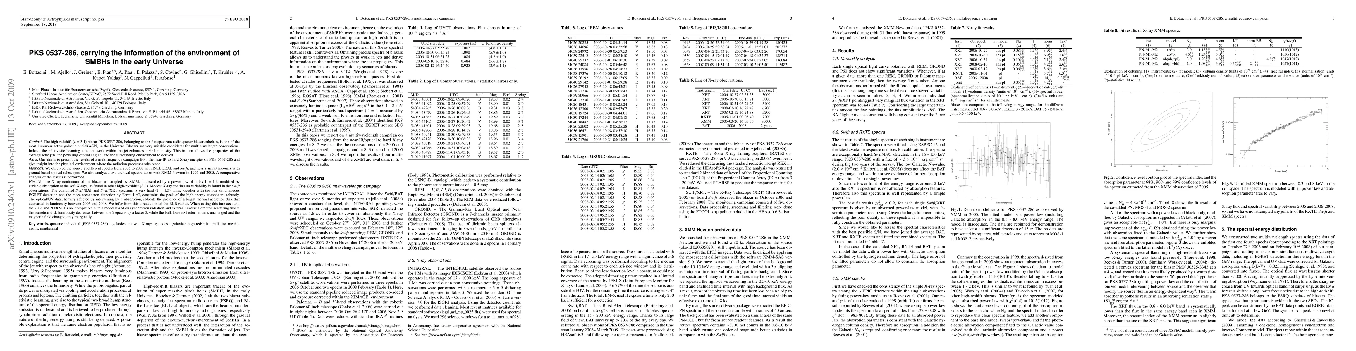 We present the results of a multifrequency campaign on the high-redshift (z = 3.1) blazar PKS 0537-286. The source was observed at different epochs from 2006 to 2008 with INTEGRAL and Swift, and nearly simultaneously with ground-based near-IR/optical telescopes. The SEDs are compatible with a model based on synchrotron radiation and external inverse Compton scattering. The campaign gives an insight into the physical environment of the blazar.