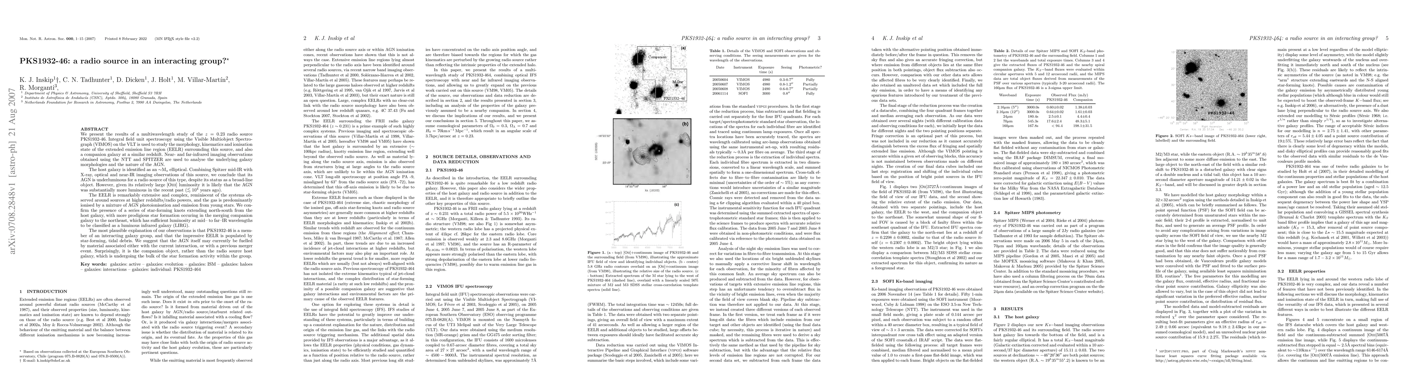 We present the results of a multiwavelength study of the z=0.23 radio source PKS1932-46. VIMOS IFU spectroscopy is used to study the morphology, kinematics and ionisation state of the EELR surrounding this source, and also a companion galaxy at a similar redshift. Near- and far-IR imaging observations obtained using the NTT and SPITZER are used to analyse the underlying galaxy morphologies and the nature of the AGN. The host galaxy is identified as an ~M* elliptical. Combining Spitzer mid-IR with X-ray, optical and near-IR imaging observations of this source, we conclude that its AGN is underluminous for a radio source of this type, despite its status as a BLRG. However, given its relatively large [OIII] luminosity it is likely that the AGN was substantially more luminous in the recent past (<10^4 years ago). The EELR is remarkably extensive and complex, reminiscent of the systems observed around sources at higher redshifts/radio powers, and the gas is predominantly ionised by a mixture of AGN photoionisation and emission from young stars. We confirm the presence of a series of star-forming knots extending N-S from the host galaxy, with more prodigious star formation occuring in the merging companion galaxy to the northeast, which has sufficient luminosity at mid- to far-IR wavelengths to be classified as a LIRG. The most plausible explanation of our observations is that PKS1932-46 is a member of an interacting galaxy group, and that the impressive EELR is populated by star-forming, tidal debris. We suggest that the AGN itself may currently be fuelled by material associated either with the current interaction, or with a previous merger event. Surprisingly, it is the companion object, rather than the radio source host galaxy, which is undergoing the bulk of the star formation activity within the group.