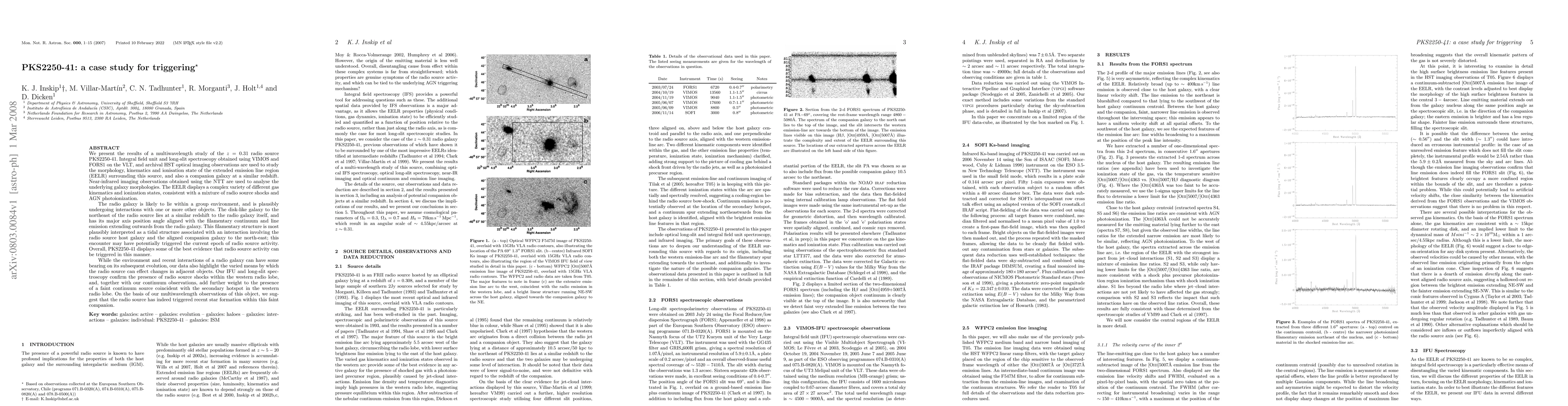 We present the results of a multiwavelength study of the z = 0.31 radio source PKS2250-41. Integral field unit and long-slit spectroscopy obtained using VIMOS and FORS1 on the VLT, and archival HST optical imaging observations are used to study the morphology, kinematics and ionisation state of the extended emission line region (EELR) surrounding this source, and also a companion galaxy at a similar redshift. Near-infrared imaging observations obtained using the NTT are used to analyse the underlying galaxy morphologies. The EELR displays a complex variety of different gas kinematics and ionization states, consistent with a mixture of radio source shocks and AGN photoionization. The radio galaxy is likely to lie within a group environment, and is plausibly undergoing interactions with one or more other objects. The disk-like galaxy to the northeast of the radio source lies at a similar redshift to the radio galaxy itself, and has its major axis position angle aligned with the filamentary continuum and line emission extending outwards from the radio galaxy. This filamentary structure is most plausibly interpreted as a tidal structure associated with an interaction involving the radio source host galaxy and the aligned companion galaxy to the north-east; this encounter may have potentially triggered the current epoch of radio source activity. Overall, PKS2250-41 displays some of the best evidence that radio source activity can be triggered in this manner. [abridged]