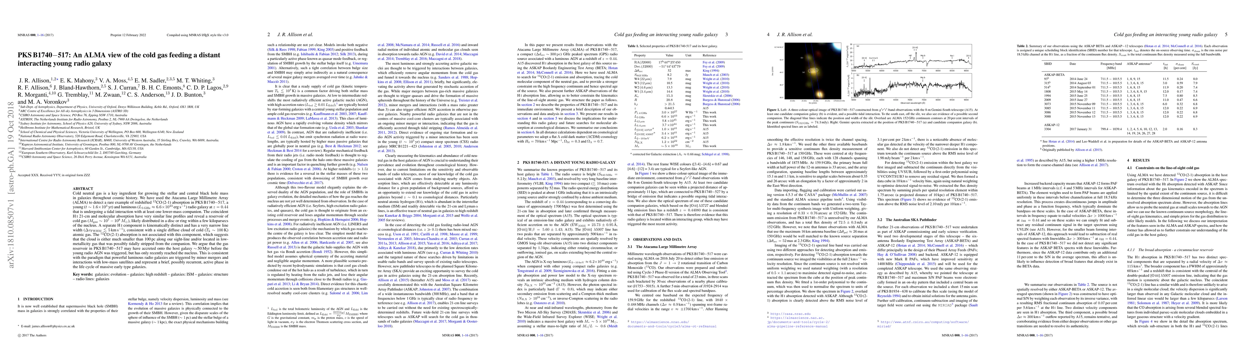 Cold neutral gas is a key ingredient for growing the stellar and central black hole mass in galaxies throughout cosmic history. We have used the Atacama Large Millimetre Array (ALMA) to detect a rare example of redshifted $^{12}$CO(2-1) absorption in PKS B1740-517, a young ($t \sim 1.6 \times 10^{3}$ yr) and luminous ($L_{\rm 5 GHz} \sim 6.6 \times 10^{43}$ erg s$^{-1}$ ) radio galaxy at $z = 0.44$ that is undergoing a tidal interaction with at least one lower-mass companion. The coincident HI 21-cm and molecular absorption have very similar line profiles and reveal a reservoir of cold gas ($M_{\rm gas} \sim 10^{7} - 10^{8}$ M$_{\odot}$), likely distributed in a disc or ring within a few kiloparsecs of the nucleus. A separate HI component is kinematically distinct and has a very narrow line width ($\Delta{v}_{\rm FWHM} \lesssim 5$ km s$^{-1}$), consistent with a single diffuse cloud of cold ($T_{\rm k} \sim 100$ K) atomic gas. The $^{12}$CO(2-1) absorption is not associated with this component, which suggests that the cloud is either much smaller than 100 pc along our sight-line and/or located in low-metallicity gas that was possibly tidally stripped from the companion. We argue that the gas reservoir in PKS B1740-517 may have accreted onto the host galaxy $\sim$50 Myr before the young radio AGN was triggered, but has only recently reached the nucleus. This is consistent with the paradigm that powerful luminous radio galaxies are triggered by minor mergers and interactions with low-mass satellites and represent a brief, possibly recurrent, active phase in the life cycle of massive early type galaxies.