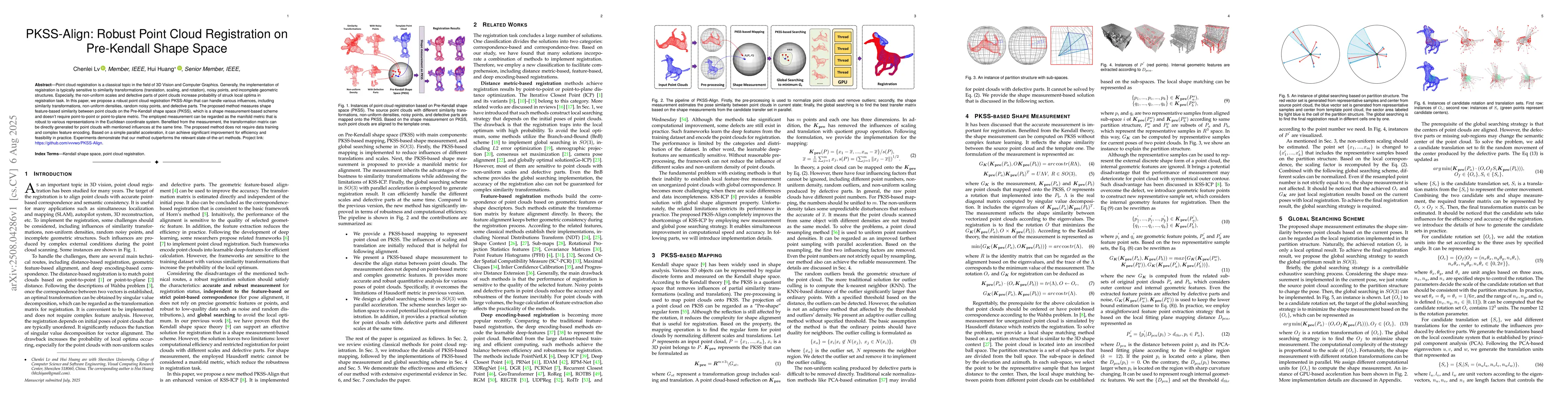 Point cloud registration is a classical topic in the field of 3D Vision and Computer Graphics. Generally, the implementation of registration is typically sensitive to similarity transformations (translation, scaling, and rotation), noisy points, and incomplete geometric structures. Especially, the non-uniform scales and defective parts of point clouds increase probability of struck local optima in registration task. In this paper, we propose a robust point cloud registration PKSS-Align that can handle various influences, including similarity transformations, non-uniform densities, random noisy points, and defective parts. The proposed method measures shape feature-based similarity between point clouds on the Pre-Kendall shape space (PKSS), \textcolor{black}{which is a shape measurement-based scheme and doesn't require point-to-point or point-to-plane metric.} The employed measurement can be regarded as the manifold metric that is robust to various representations in the Euclidean coordinate system. Benefited from the measurement, the transformation matrix can be directly generated for point clouds with mentioned influences at the same time. The proposed method does not require data training and complex feature encoding. Based on a simple parallel acceleration, it can achieve significant improvement for efficiency and feasibility in practice. Experiments demonstrate that our method outperforms the relevant state-of-the-art methods.