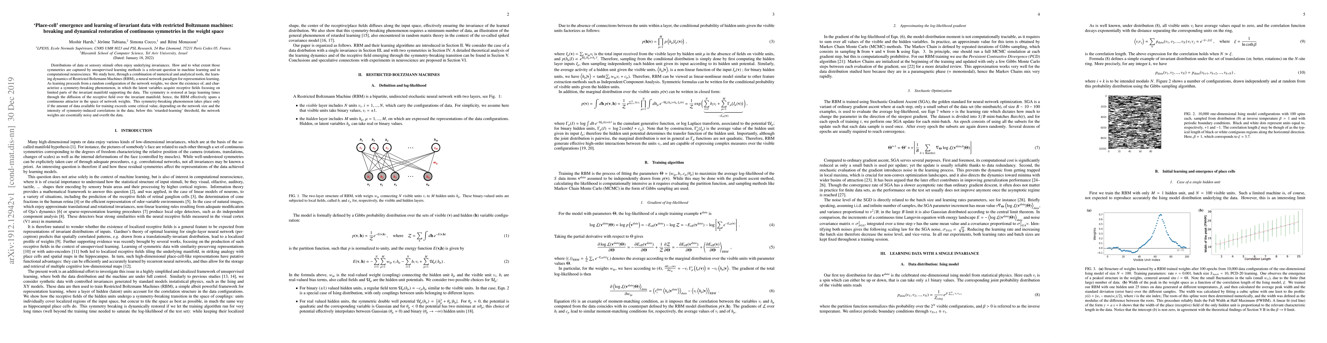 This paper investigates how Restricted Boltzmann Machines (RBM) learn invariant data, revealing a symmetry-breaking phenomenon where latent variables initially focus on limited data parts, followed by a dynamical restoration of symmetry as learning progresses, provided sufficient training data is available.