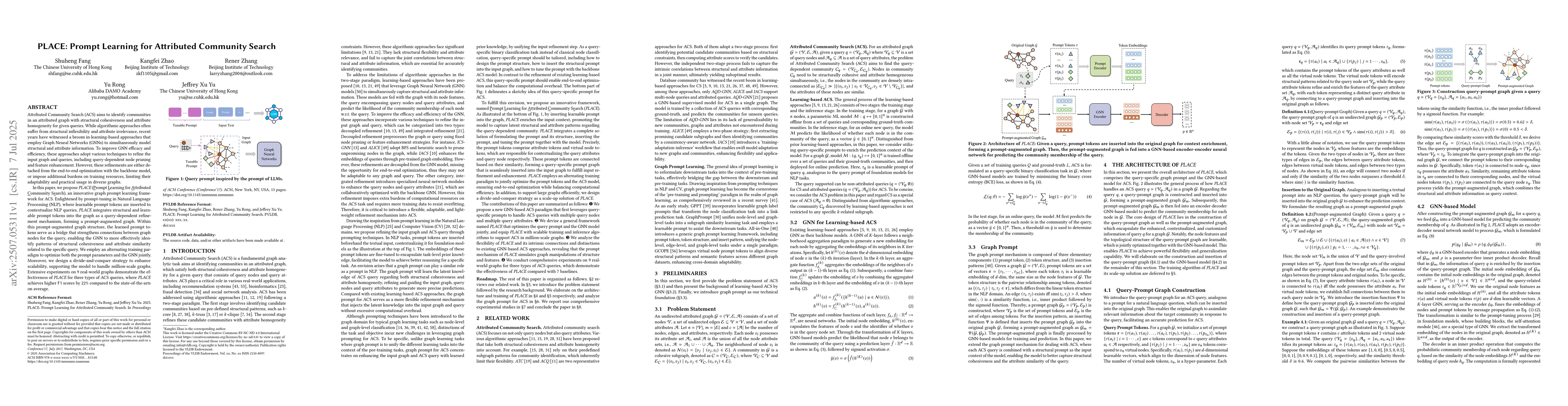 In this paper, we propose PLACE (Prompt Learning for Attributed Community Search), an innovative graph prompt learning framework for ACS. Enlightened by prompt-tuning in Natural Language Processing (NLP), where learnable prompt tokens are inserted to contextualize NLP queries, PLACE integrates structural and learnable prompt tokens into the graph as a query-dependent refinement mechanism, forming a prompt-augmented graph. Within this prompt-augmented graph structure, the learned prompt tokens serve as a bridge that strengthens connections between graph nodes for the query, enabling the GNN to more effectively identify patterns of structural cohesiveness and attribute similarity related to the specific query. We employ an alternating training paradigm to optimize both the prompt parameters and the GNN jointly. Moreover, we design a divide-and-conquer strategy to enhance scalability, supporting the model to handle million-scale graphs. Extensive experiments on 9 real-world graphs demonstrate the effectiveness of PLACE for three types of ACS queries, where PLACE achieves higher F1 scores by 22% compared to the state-of-the-arts on average.