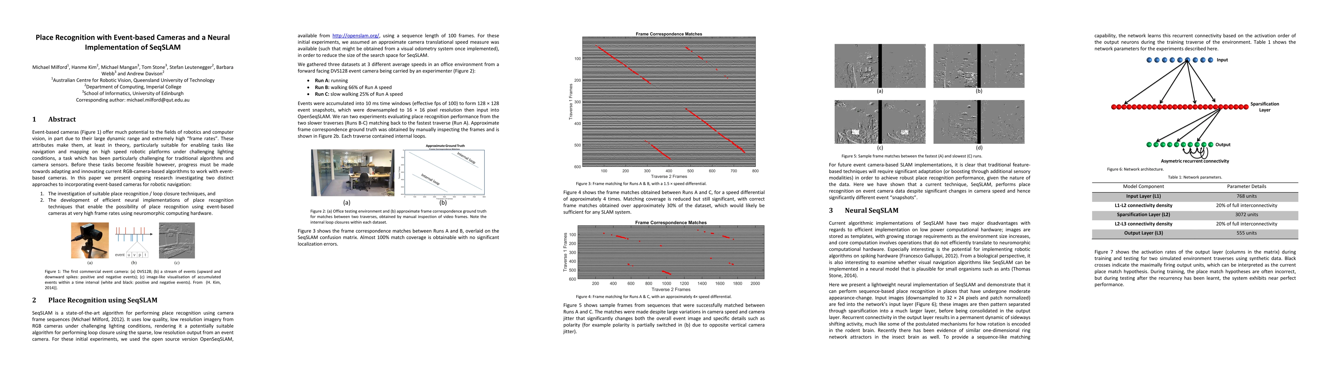 This paper explores adapting place recognition techniques for event-based cameras to enable high-speed robotic navigation under challenging lighting conditions. It investigates both traditional loop closure methods and neural implementations for efficient place recognition using neuromorphic computing.