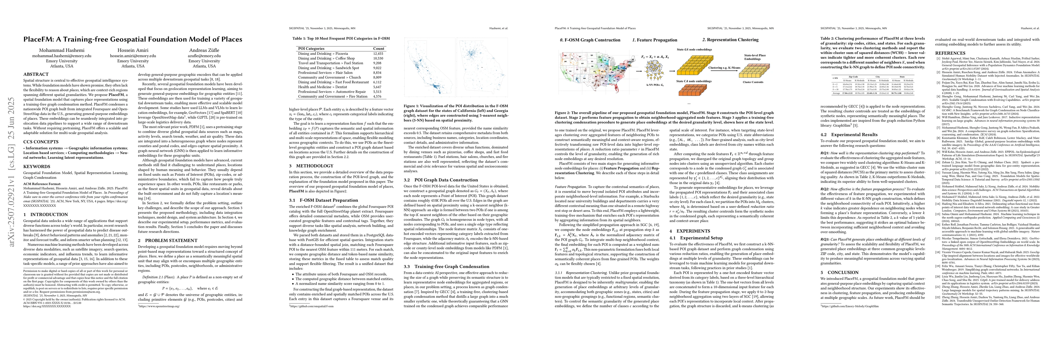 Spatial structure is central to effective geospatial intelligence systems. While foundation models have shown promise, they often lack the flexibility to reason about places, which are context-rich regions spanning different spatial granularities. We propose PlaceFM, a spatial foundation model that captures place representations using a training-free graph condensation method. PlaceFM condenses a nationwide POI graph built from integrated Foursquare and OpenStreetMap data in the U.S., generating general-purpose embeddings of places. These embeddings can be seamlessly integrated into geolocation data pipelines to support a wide range of downstream tasks. Without requiring pretraining, PlaceFM offers a scalable and adaptable solution for multi-scale geospatial analysis.