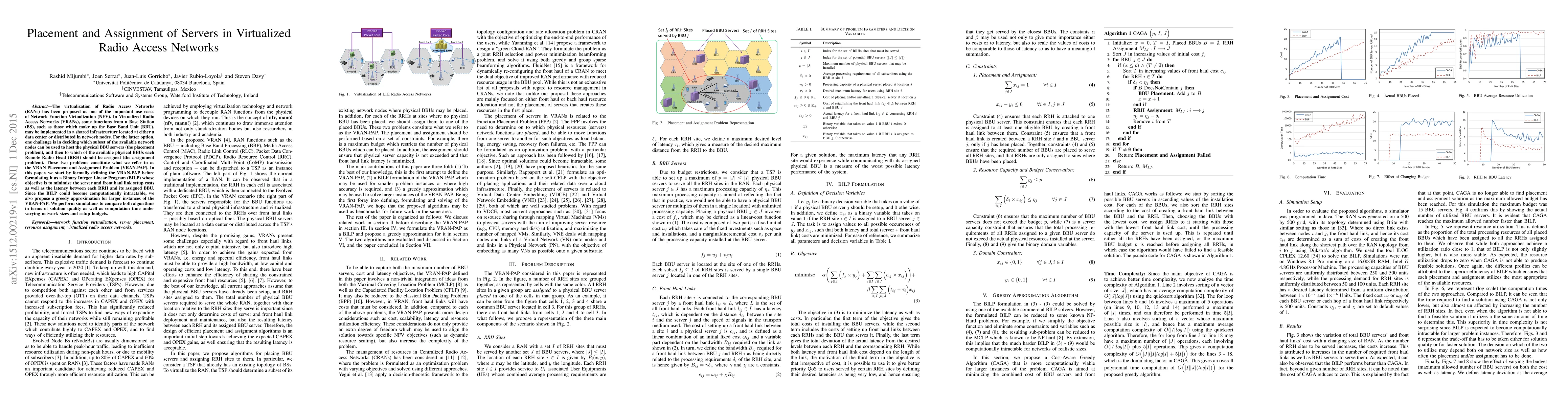 This paper defines the VRAN Placement and Assignment Problem (VRAN-PAP) in virtualized radio access networks, formulating it as a Binary Integer Linear Program to minimize costs and latency. It also proposes a greedy approximation for larger instances and evaluates both algorithms through simulations.