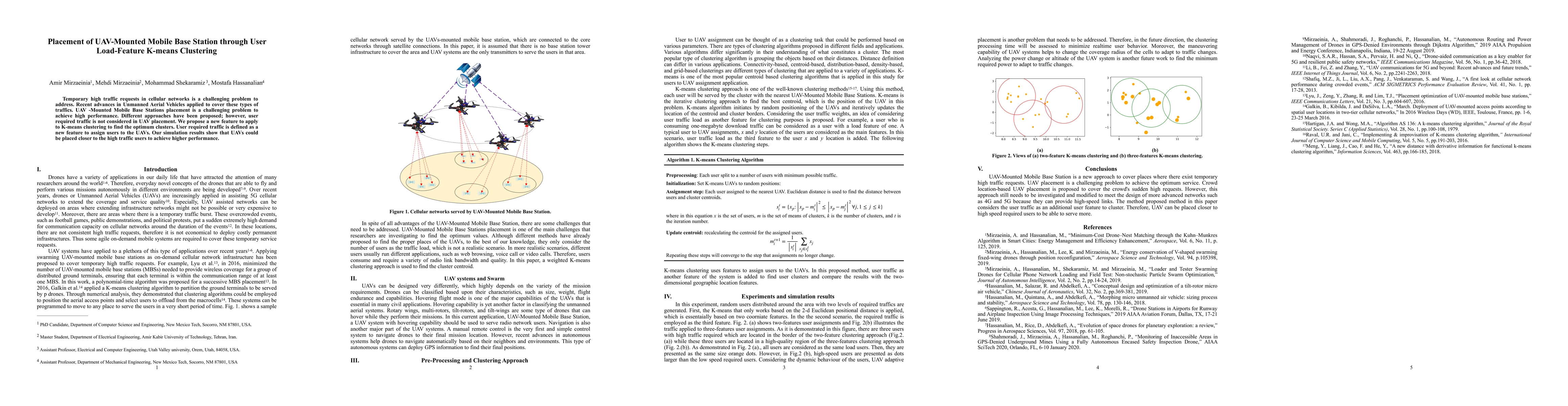 Temporary high traffic requests in cellular networks is a challenging problem to address. Recent advances in Unmanned Aerial Vehicles applied to cover these types of traffics. UAV -Mounted Mobile Base Stations placement is a challenging problem to achieve high performance. Different approaches have been proposed; however, user required traffic is not considered in UAV placement. We propose a new feature to apply to K-means clustering to find the optimum clusters. User required traffic is defined as a new feature to assign users to the UAVs. Our simulation results show that UAVs could be placed closer to the high traffic users to achieve higher performance.