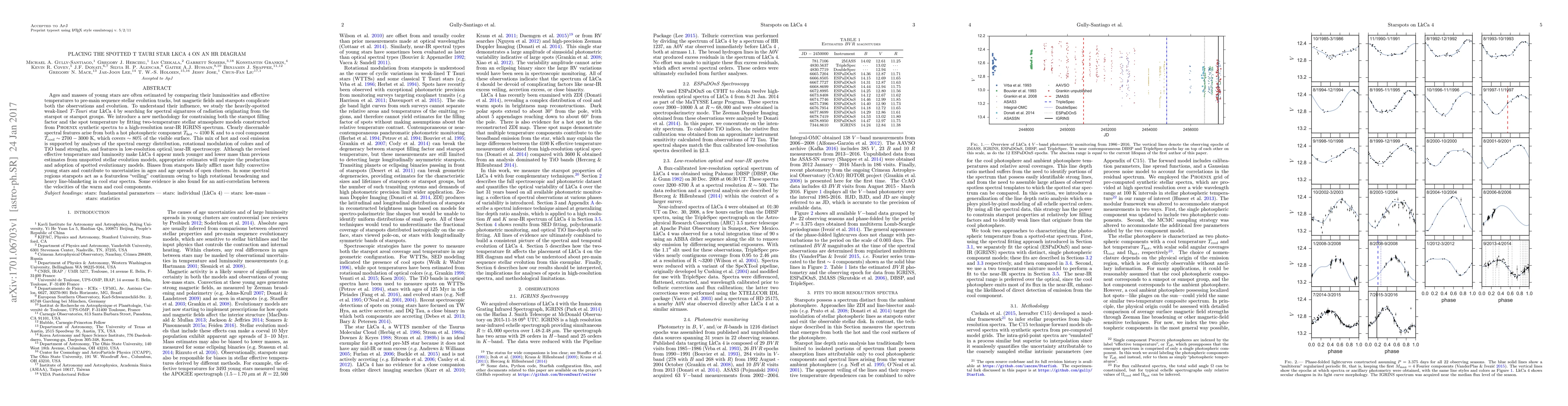 This study investigates the spotted T Tauri star LkCa 4 using high-resolution spectroscopy to determine its effective temperature and luminosity, revealing a complex mix of hot and cool components. The findings suggest that starspots significantly affect age and mass estimates, necessitating the development of new evolutionary models for fully convective young stars.