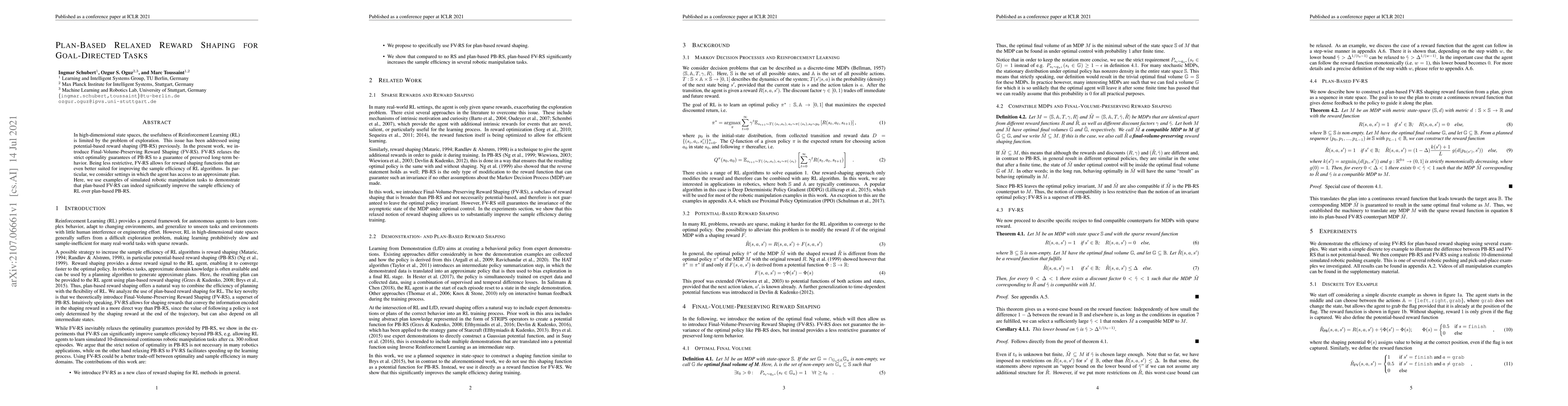 Researchers introduce Final-Volume-Preserving Reward Shaping (FV-RS), a new method that improves sample efficiency of reinforcement learning algorithms by allowing for more flexible reward shaping functions. FV-RS outperforms traditional plan-based methods in simulated robotic manipulation tasks.