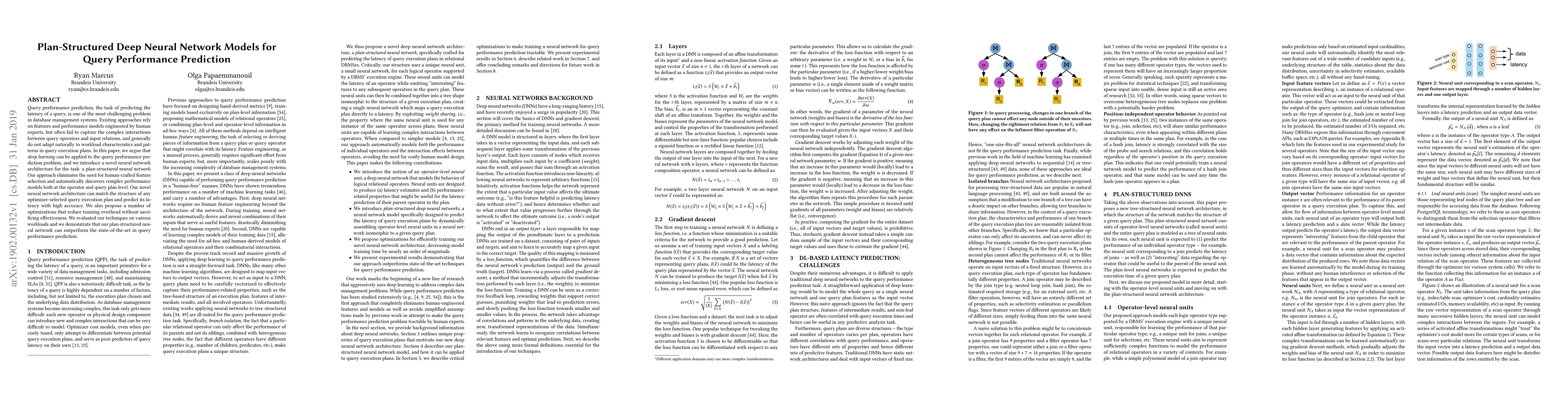 This paper proposes a plan-structured deep neural network to predict query performance latency, eliminating the need for human-engineered features and adapting to complex interactions in query execution plans. The model outperforms existing methods by matching the structure of query execution plans and leveraging automatic feature discovery.