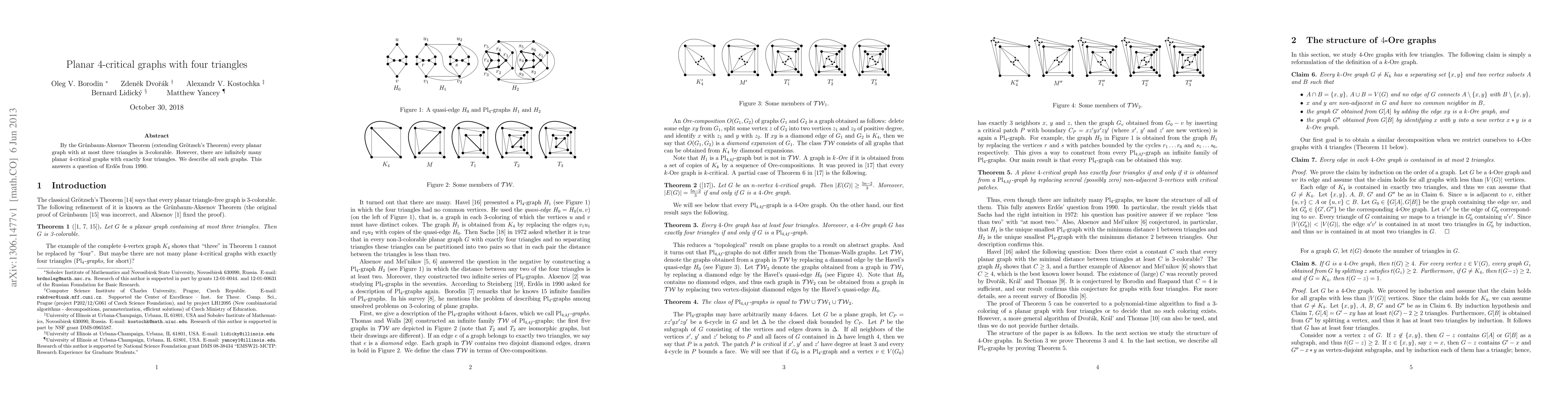 This paper identifies and describes all planar 4-critical graphs containing exactly four triangles, resolving a 1990 question by Erdos regarding the existence of such graphs, which defy 3-colorability despite being planar.