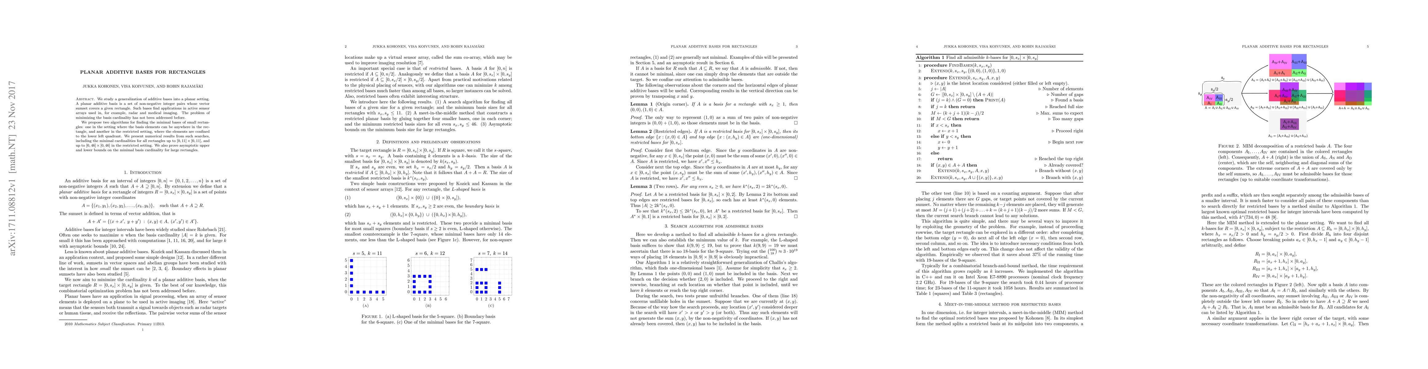 Researchers developed algorithms to find minimal planar additive bases for rectangles, discovering the smallest sets of non-negative integer pairs that cover specific areas, with implications in active sensor arrays and medical imaging.