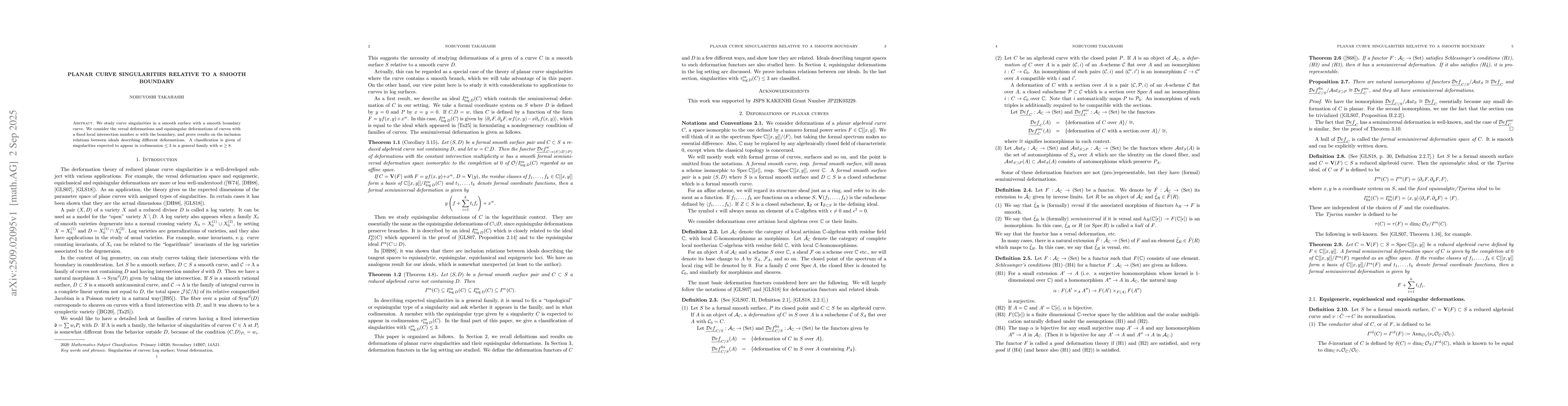 We study curve singularities in a smooth surface with a smooth boundary curve. We consider the versal deformations and equisingular deformations of curves with a fixed local intersection number $w$ with the boundary, and prove results on the inclusion relations between ideals describing different deformations. A classification is given of singularities expected to appear in codimension $\leq 3$ in a general family with $w\geq 8$.