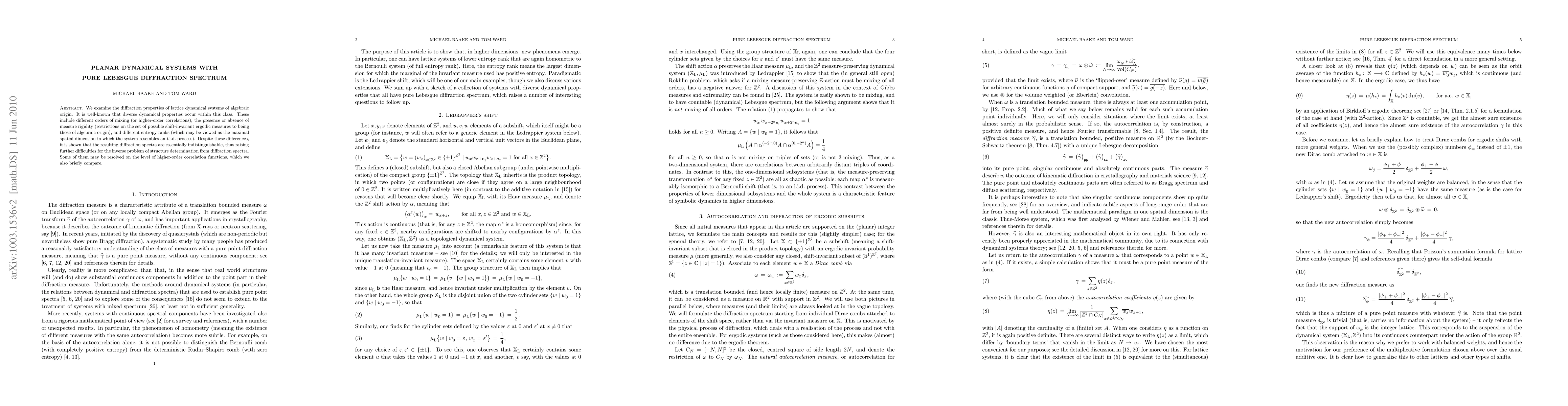 We examine the diffraction properties of lattice dynamical systems of algebraic origin. It is well-known that diverse dynamical properties occur within this class. These include different orders of mixing (or higher-order correlations), the presence or absence of measure rigidity (restrictions on the set of possible shift-invariant ergodic measures to being those of algebraic origin), and different entropy ranks (which may be viewed as the maximal spatial dimension in which the system resembles an i.i.d.\ process). Despite these differences, it is shown that the resulting diffraction spectra are essentially indistinguishable, thus raising further difficulties for the inverse problem of structure determination from diffraction spectra. Some of them may be resolved on the level of higher-order correlation functions, which we also briefly compare.