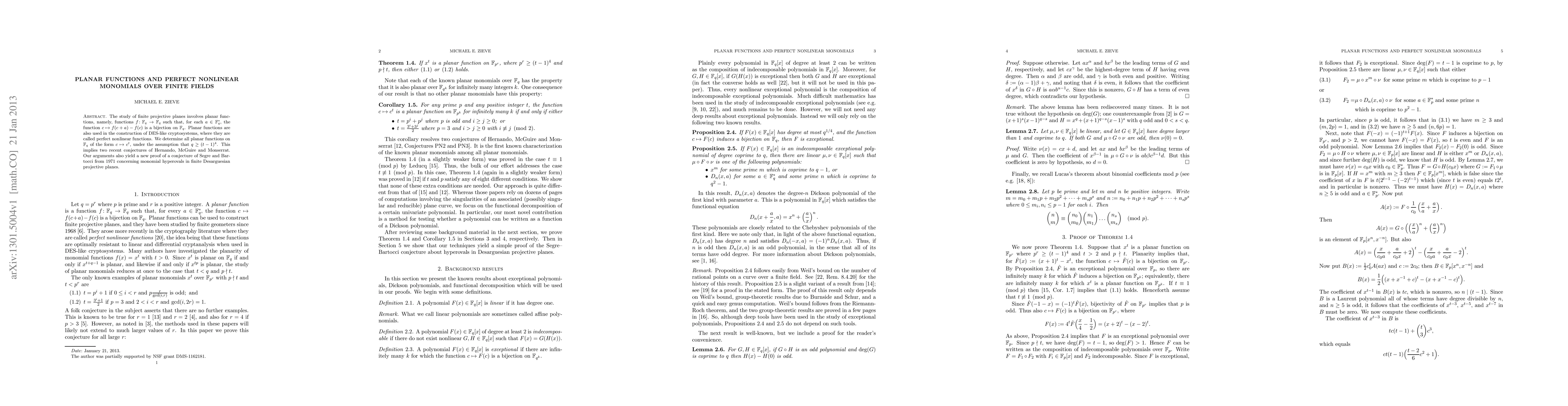 This paper identifies all planar functions of the form c --> c^t over finite fields F_q, proving that q >= (t-1)^4 for these functions to be bijections. It also confirms two conjectures related to perfect nonlinear monomials and provides a new proof for a 1971 conjecture on monomial hyperovals.