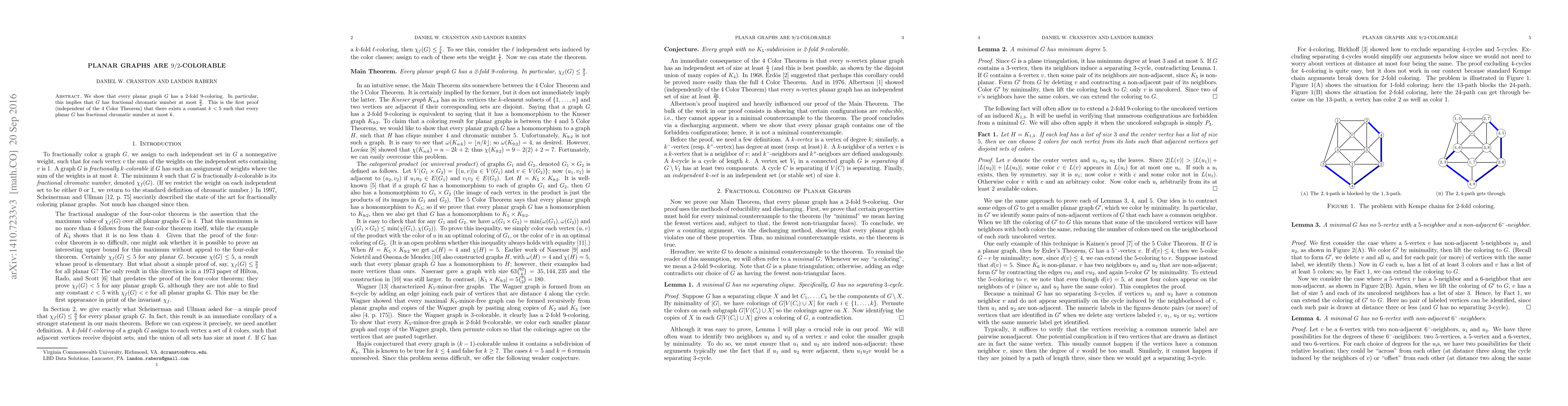 We show that every planar graph $G$ has a 2-fold 9-coloring. In particular, this implies that $G$ has fractional chromatic number at most $\frac92$. This is the first proof (independent of the 4 Color Theorem) that there exists a constant $k<5$ such that every planar $G$ has fractional chromatic number at most $k$.