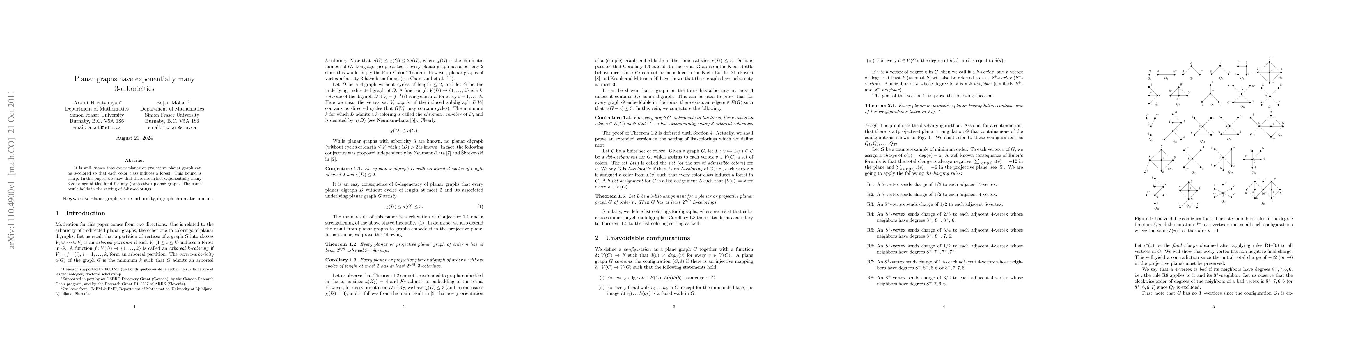 It is well-known that every planar or projective planar graph can be 3-colored so that each color class induces a forest. This bound is sharp. In this paper, we show that there are in fact exponentially many 3-colorings of this kind for any (projective) planar graph. The same result holds in the setting of 3-list-colorings.