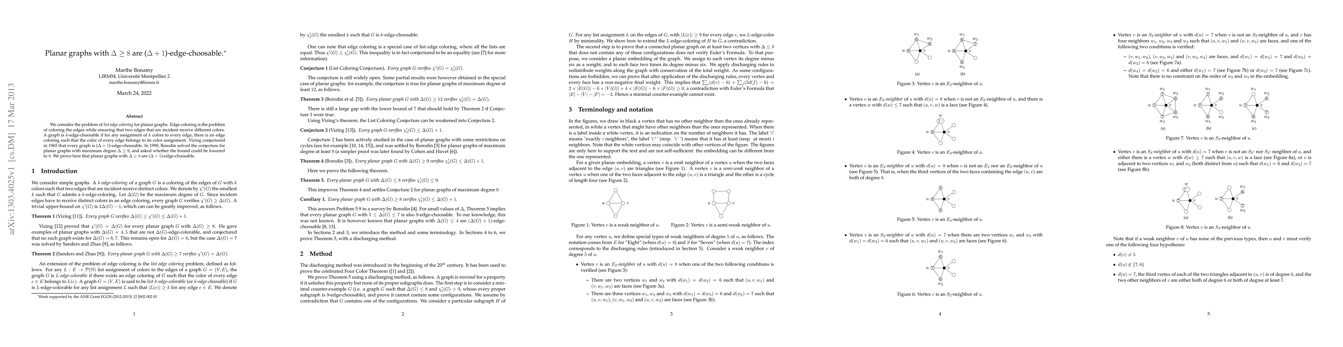 The paper proves that planar graphs with a maximum degree of at least 8 are (D+1)-edge-choosable, confirming Vizing's conjecture for this lower degree bound. This resolves a longstanding question posed by Borodin regarding whether the conjecture holds for degree 8 instead of 9.
