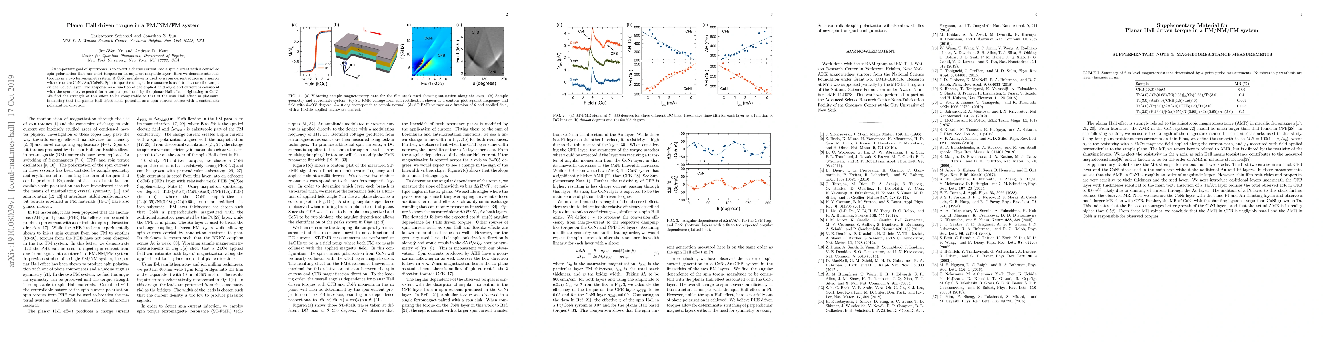 An important goal of spintronics is to covert a charge current into a spin current with a controlled spin polarization that can exert torques on an adjacent magnetic layer. Here we demonstrate such torques in a two ferromagnet system. A CoNi multilayer is used as a spin current source in a sample with structure CoNi/Au/CoFeB. Spin torque ferromagnetic resonance is used to measure the torque on the CoFeB layer. The response as a function of the applied field angle and current is consistent with the symmetry expected for a torques produced by the planar Hall effect originating in CoNi. We find the strength of this effect to be comparable to that of the spin Hall effect in platinum, indicating that the planar Hall effect holds potential as a spin current source with a controllable polarization direction.
