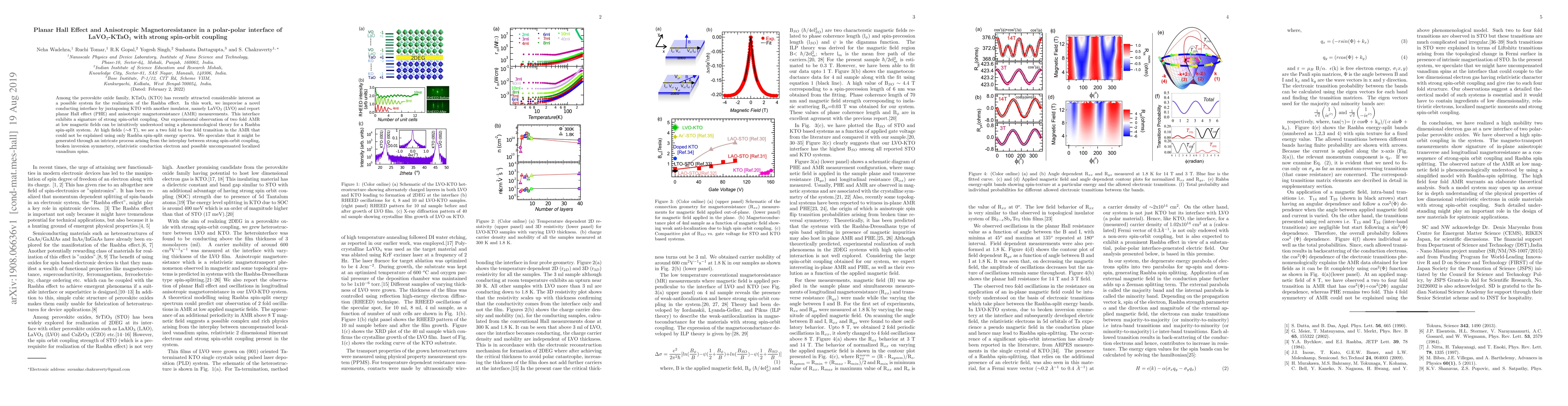 This research investigates a polar-polar interface between LaVO$_3$ and KTaO$_3$, revealing planar Hall effect and anisotropic magnetoresistance signatures indicative of strong spin-orbit coupling. The observed transition from two fold to four fold AMR at high magnetic fields suggests complex interactions beyond simple Rashba effects.