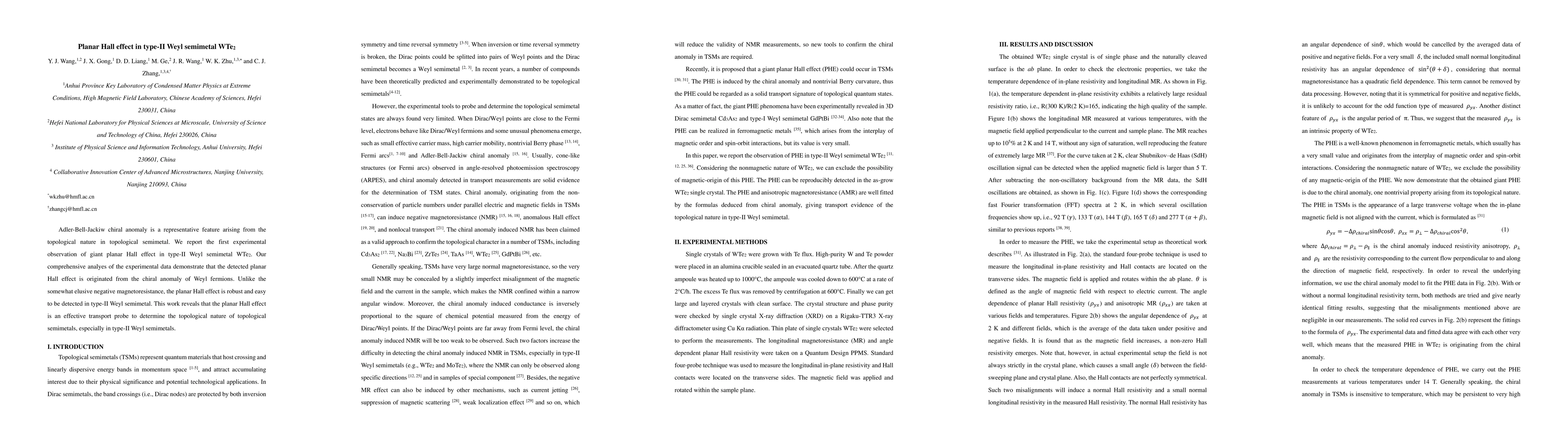 This paper reports the first observation of a giant planar Hall effect in the type-II Weyl semimetal WTe2, attributing it to the Adler-Bell-Jackiw chiral anomaly of Weyl fermions. The planar Hall effect serves as a robust transport probe for determining the topological nature of type-II Weyl semimetals.