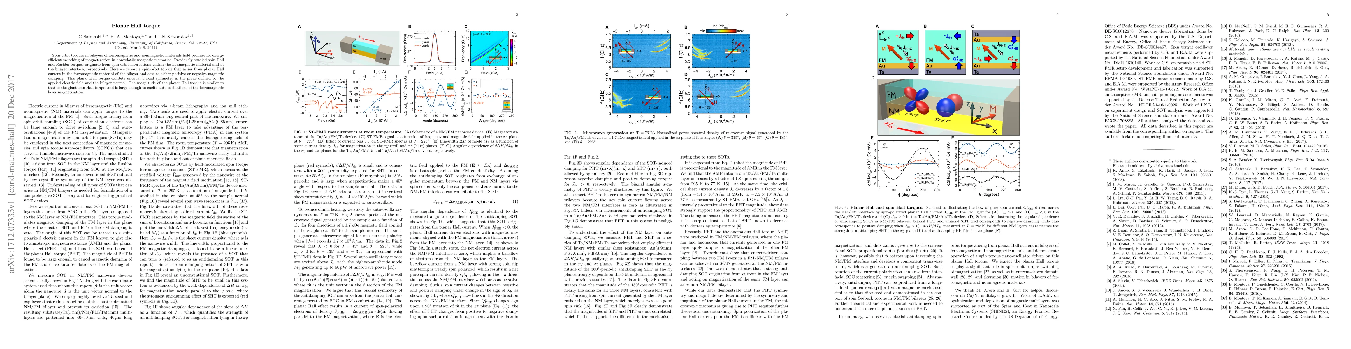Spin-orbit torques in bilayers of ferromagnetic and nonmagnetic materials hold promise for energy efficient switching of magnetization in nonvolatile magnetic memories. Previously studied spin Hall and Rashba torques originate from spin-orbit interactions within the nonmagnetic material and at the bilayer interface, respectively. Here we report a spin-orbit torque that arises from planar Hall current in the ferromagnetic material of the bilayer and acts as either positive or negative magnetic damping. This planar Hall torque exhibits unusual biaxial symmetry in the plane defined by the applied electric field and the bilayer normal. The magnitude of the planar Hall torque is similar to that of the giant spin Hall torque and is large enough to excite auto-oscillations of the ferromagnetic layer magnetization.