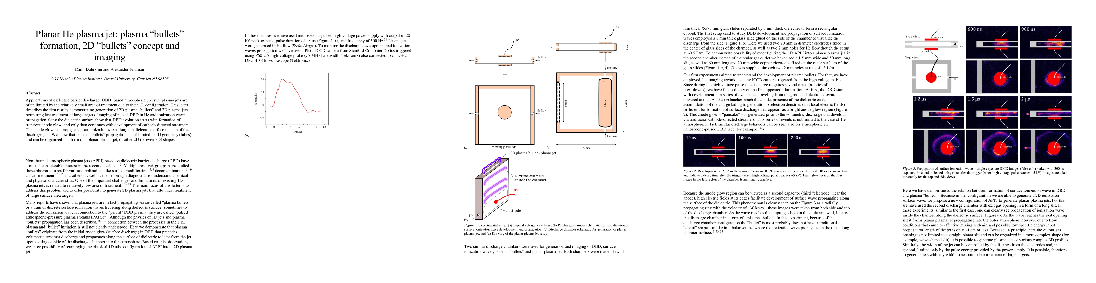 The main technical contribution of this research was the demonstration of the ability to generate controlled, non-thermal plasma jets using a 1D APPJ setup.