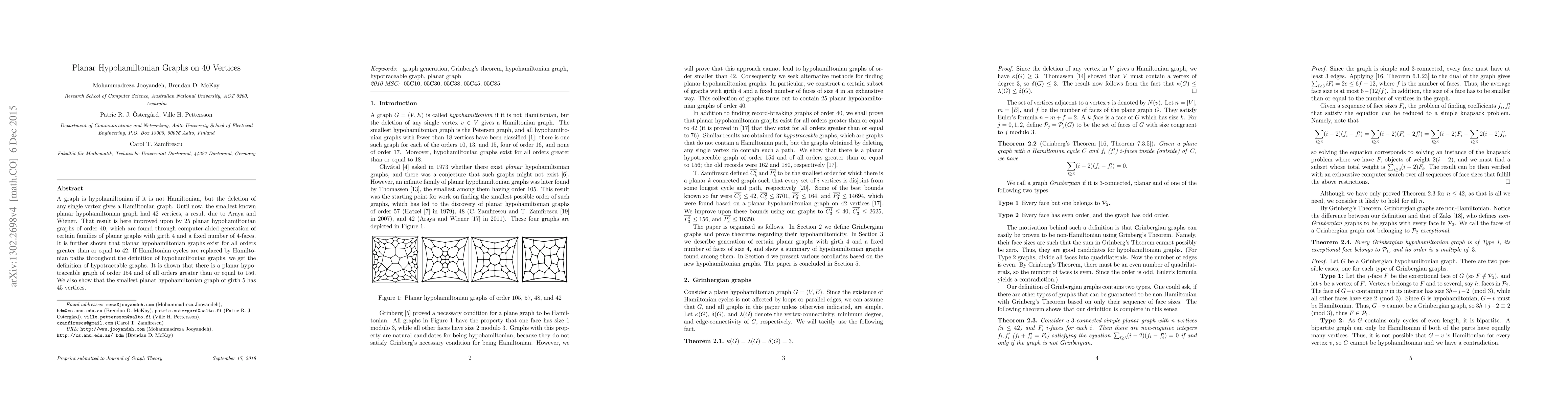 This paper identifies 25 planar hypohamiltonian graphs with 40 vertices, improving upon the previous record of 42 vertices. It also demonstrates that planar hypohamiltonian graphs exist for all orders greater than or equal to 42 and introduces planar hypotraceable graphs, showing existence for orders 154 and above.