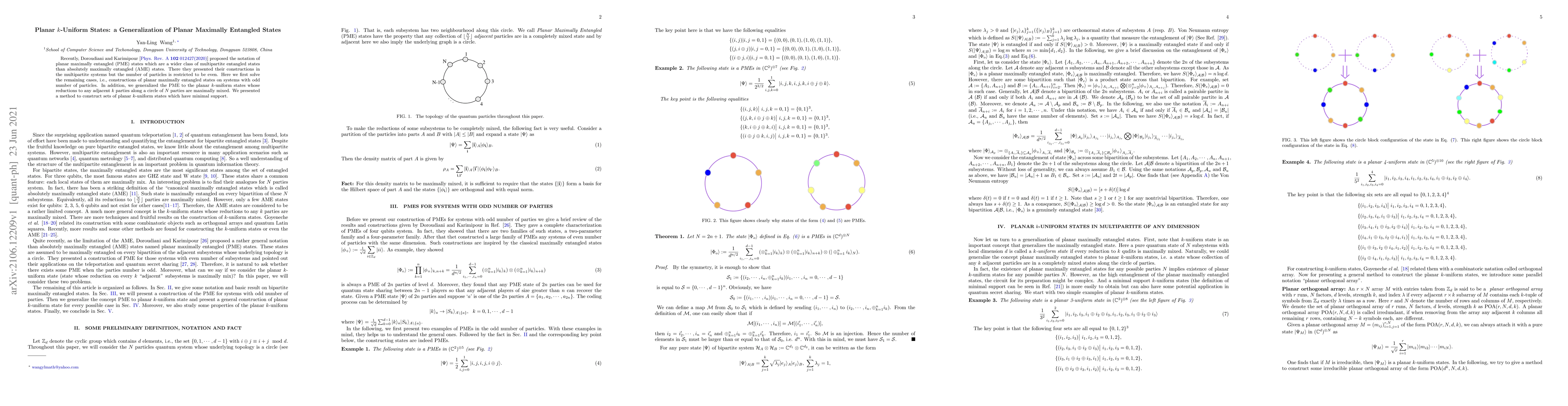The paper introduces planar k-uniform states, a generalization of planar maximally entangled states, and provides methods to construct these states using planar orthogonal arrays, extending previous work on planar maximally entangled states for odd numbers of particles.