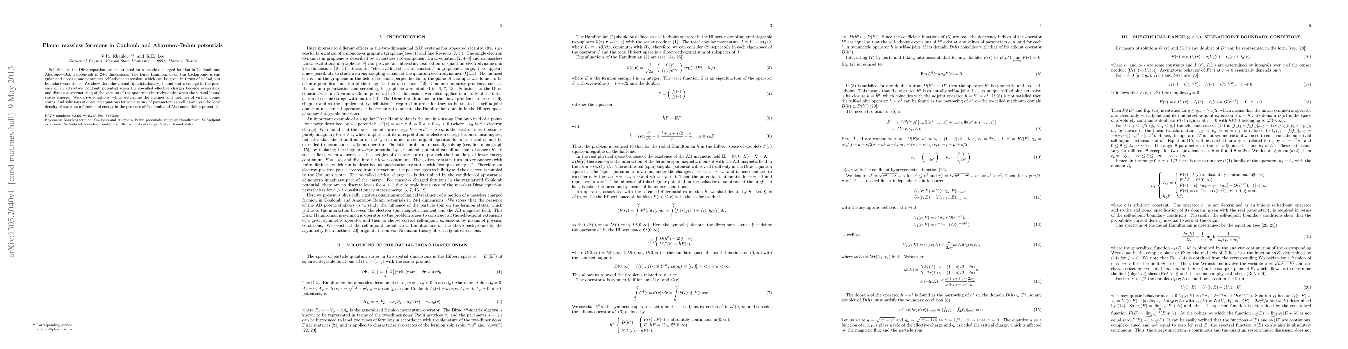 This paper constructs solutions to the Dirac equation for massless charged fermions in 2+1 dimensions under Coulomb and Aharonov-Bohm potentials, exploring the emergence of virtual bound states and their impact on the vacuum structure in quantum electrodynamics. The study derives equations for energy and lifetime of these states, analyzing their local density of states.