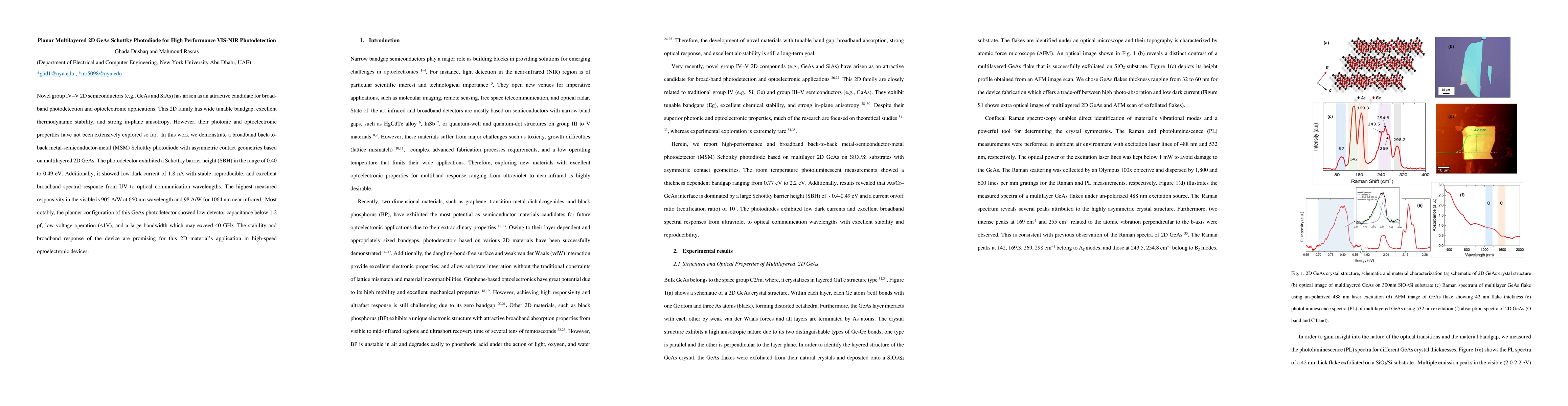 A new 2D GeAs photodiode with low dark current and high responsivity is demonstrated for broadband UV to optical communication wavelengths, enabling promising performance in high-speed optoelectronic devices.