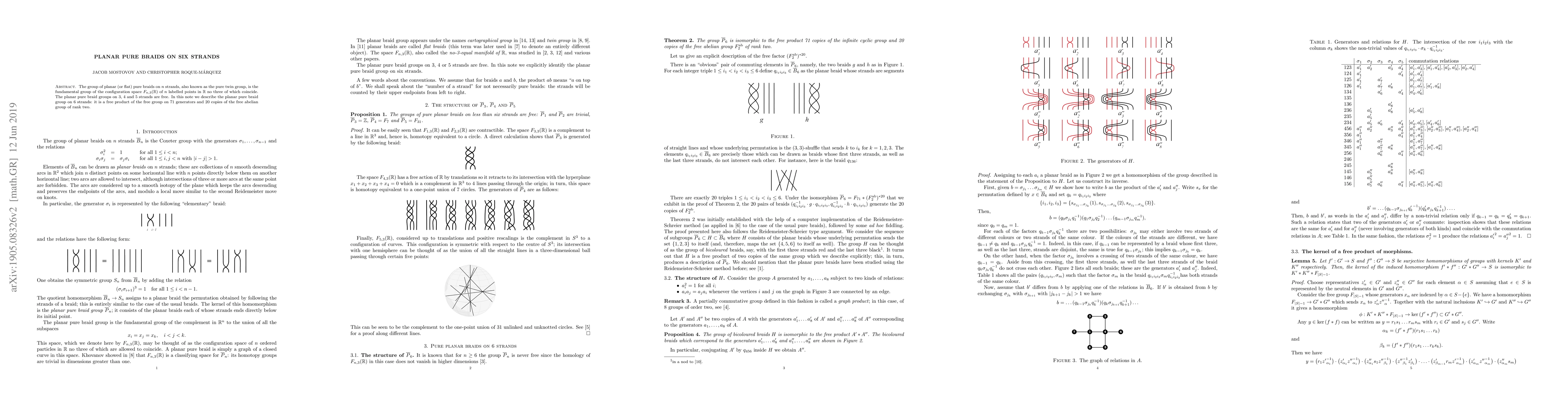 This paper investigates the planar pure braid group on six strands, revealing it to be a free product comprising a free group on 71 generators and 20 copies of the free abelian group of rank two, contrasting with the free nature of the groups on fewer strands.