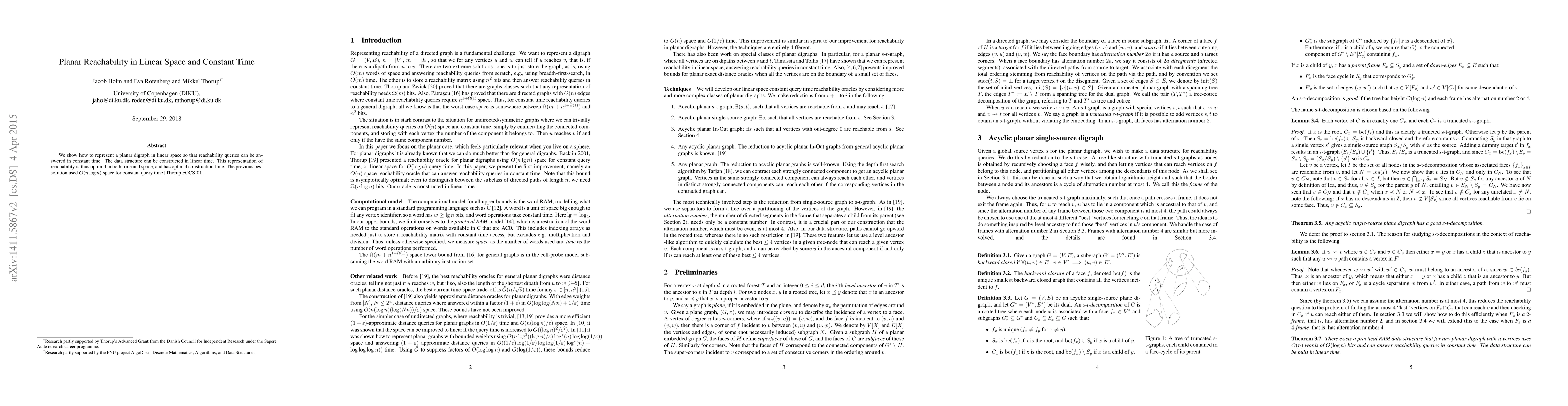 A new data structure represents planar digraphs in linear space, enabling constant-time distance queries, outperforming previous solutions with O(n log n) space requirements.
