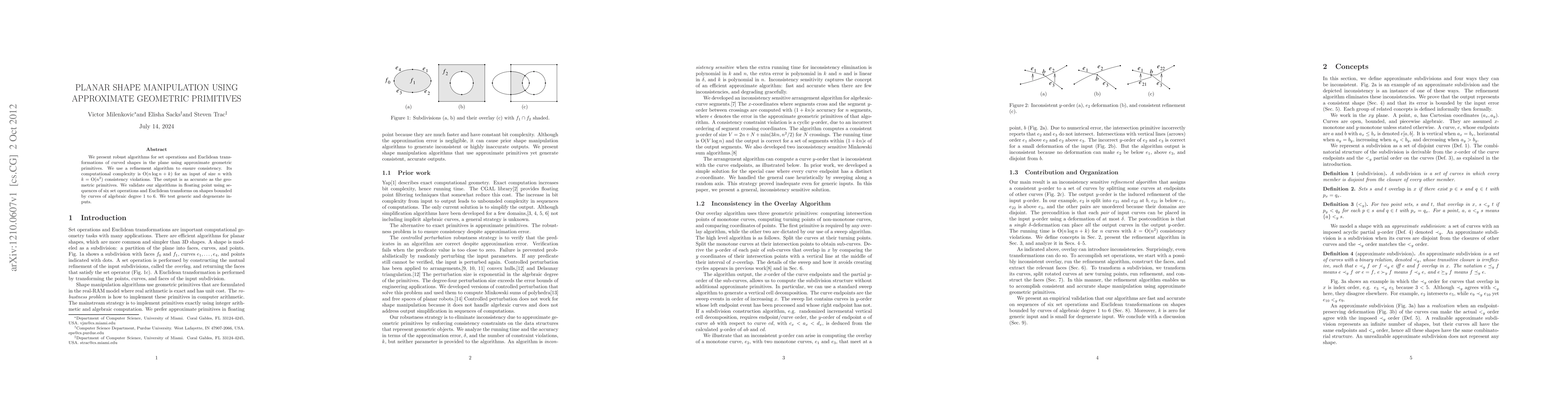 Researchers developed algorithms for robustly manipulating curved shapes in the plane using approximate geometric primitives, achieving accuracy comparable to exact methods with faster computational complexity.