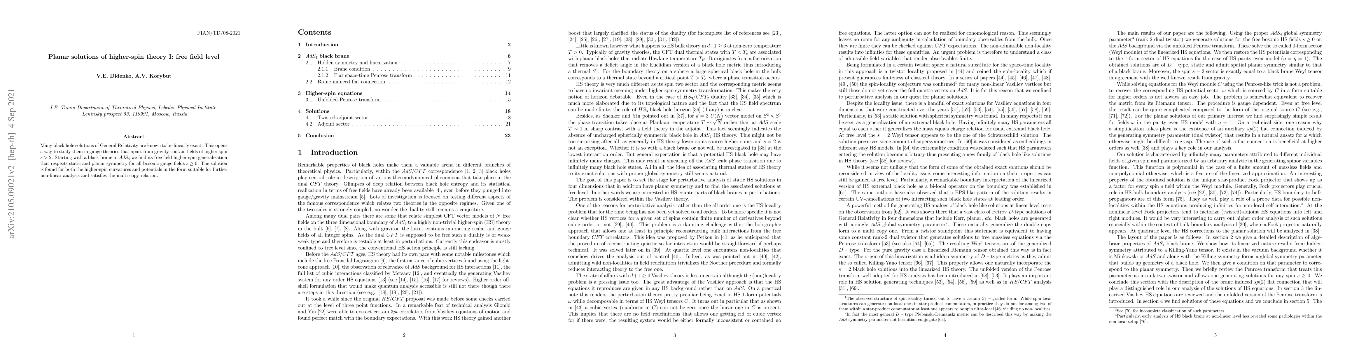 Many black hole solutions of General Relativity are known to be linearly exact. This opens a way to study them in gauge theories that apart from gravity contain fields of higher spin $s>2$. Starting with a black brane in $AdS_4$ we find its free field higher-spin generalization that respects static and planar symmetry for all bosonic gauge fields $s\geq 0$. The solution is found for both the higher-spin curvatures and potentials in the form suitable for further non-linear analysis and satisfies the multi copy relation.